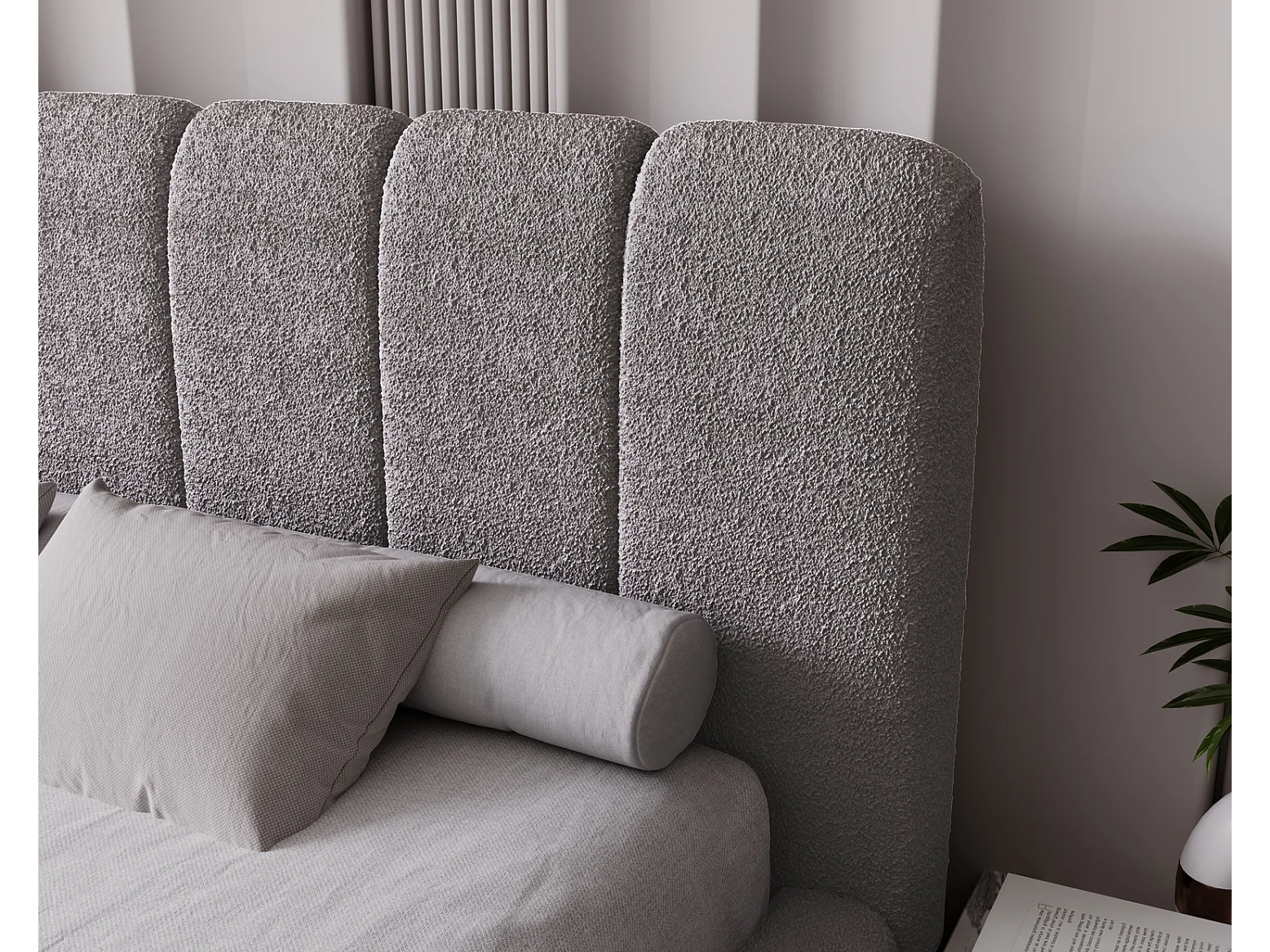 Emporius bed 200x200 Milan Bouclé - opbergruimte, lattenbodem, bedlade - tweepersoonsbed Bouclé - Lichtgrijs (Anthology 15)