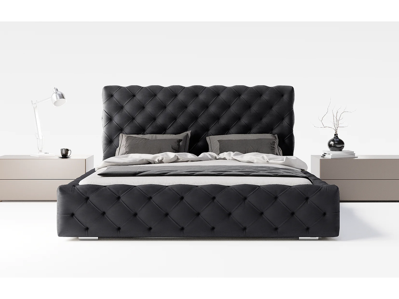 Emporius bed 200x200 Paris - bed met opbergruimte, gestoffeerd bed met lattenbodem - fluwelen Zwart (Magic Velvet 2219)