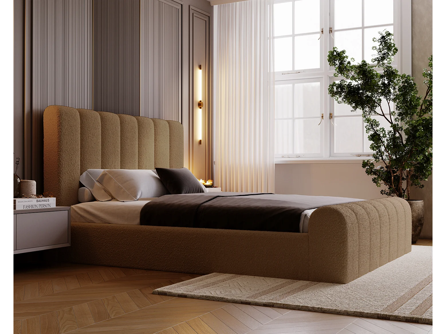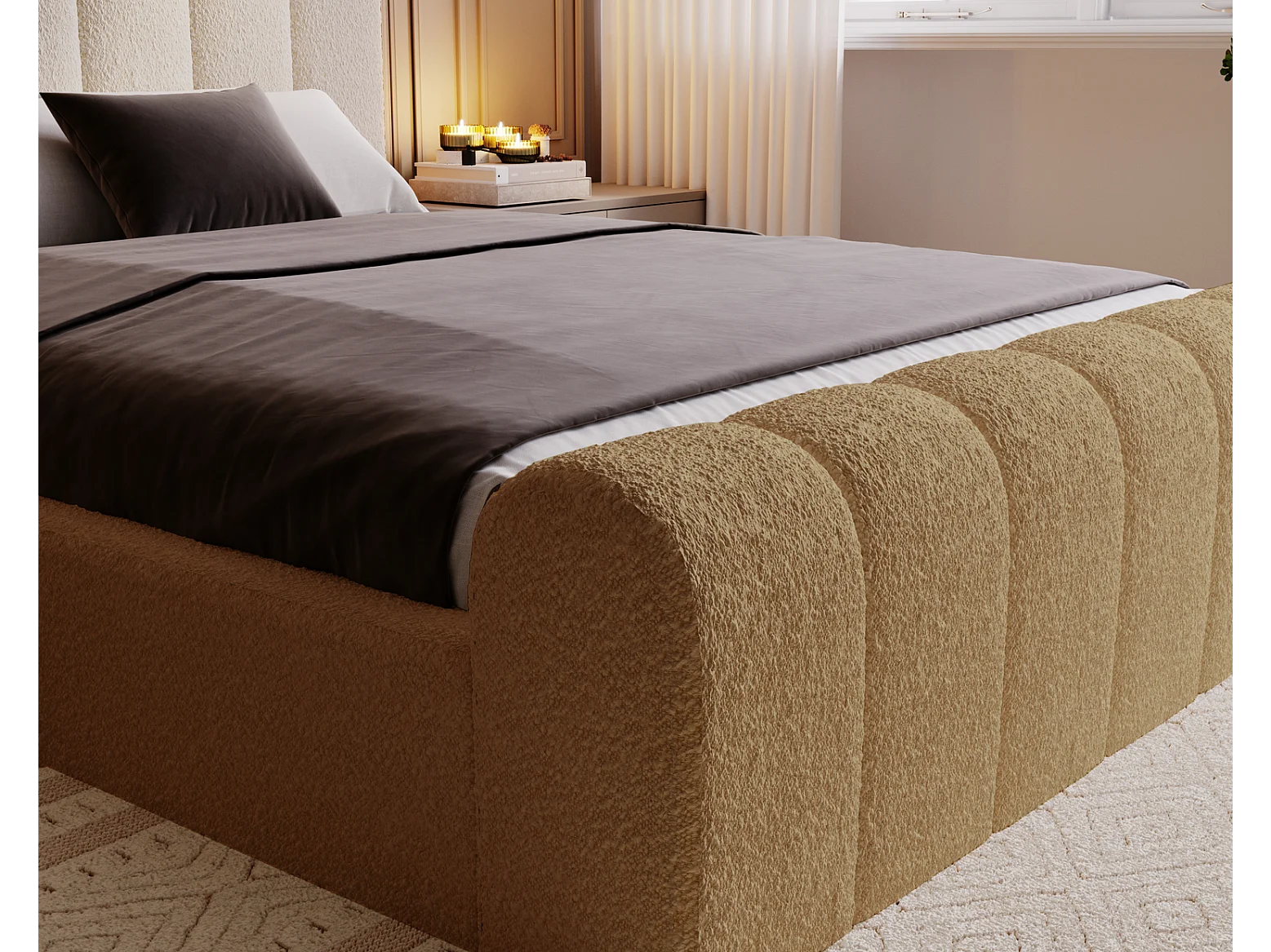 Emporius bed bouclé 180x200 Valetta - Gestoffeerd bed met opbergruimte, luxe bed met lattenbodem en bedlade - tweepersoonsbed 180x200 - Oranje (Anthology 10)