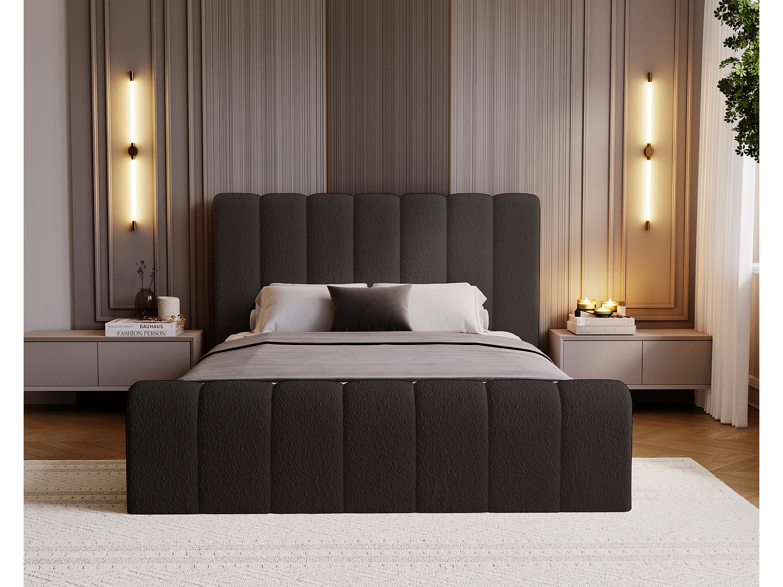 Emporius bed bouclé 180x200 Valetta - Gestoffeerd bed met opbergruimte, luxe bed met lattenbodem en bedlade - tweepersoonsbed 180x200 - Zwart (Anthology 19)