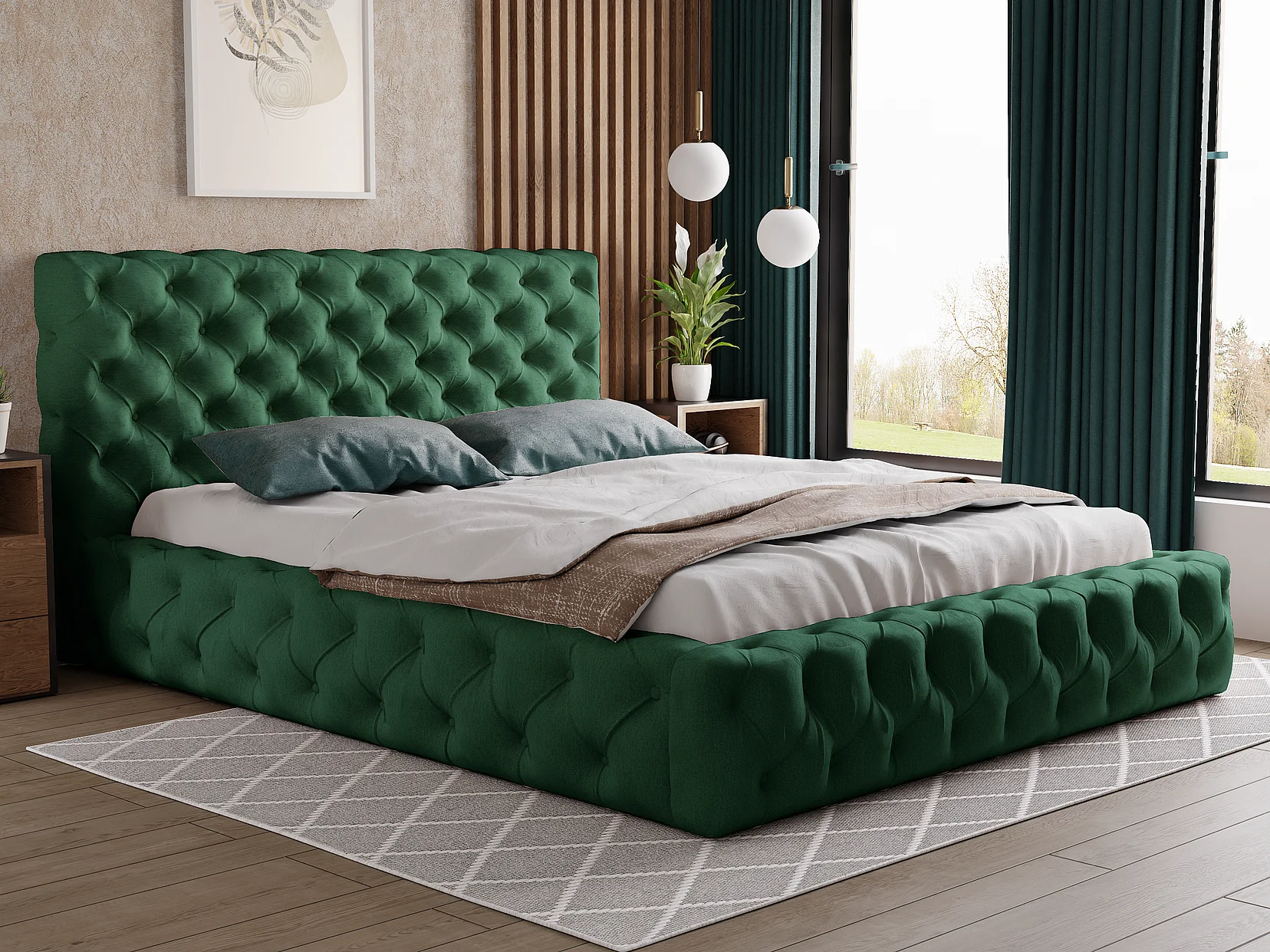 Emporius bed met bedlade 140x200 cm Glory - lattenbodem, tweepersoonsbed 140 x 200, fluweel Groen (Kronos 19)