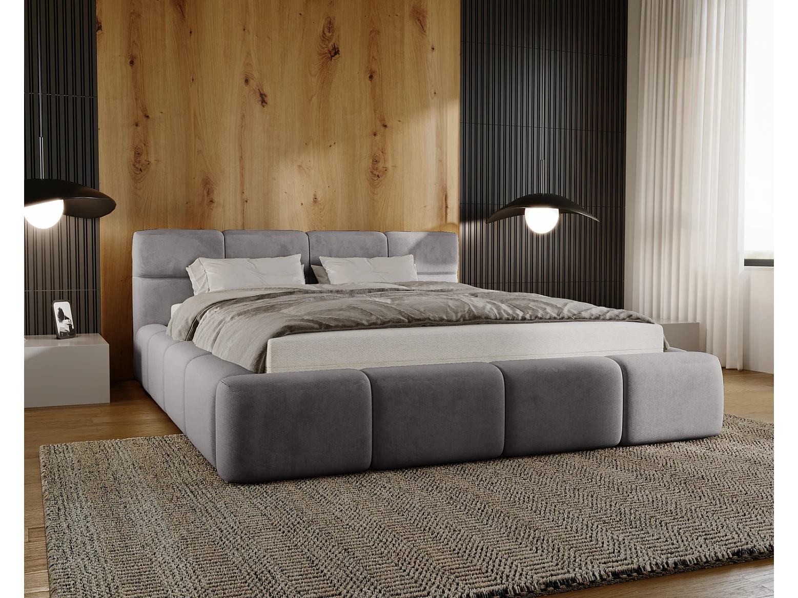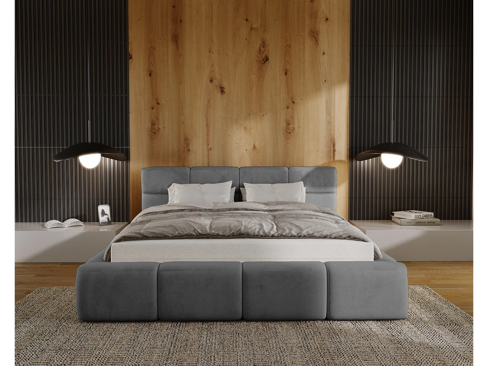 Emporius bed met opbergruimte 160x200 Oslo - tweepersoonsbed met bedlade, gestoffeerd bed Grijs (Magic Velvet 2217)