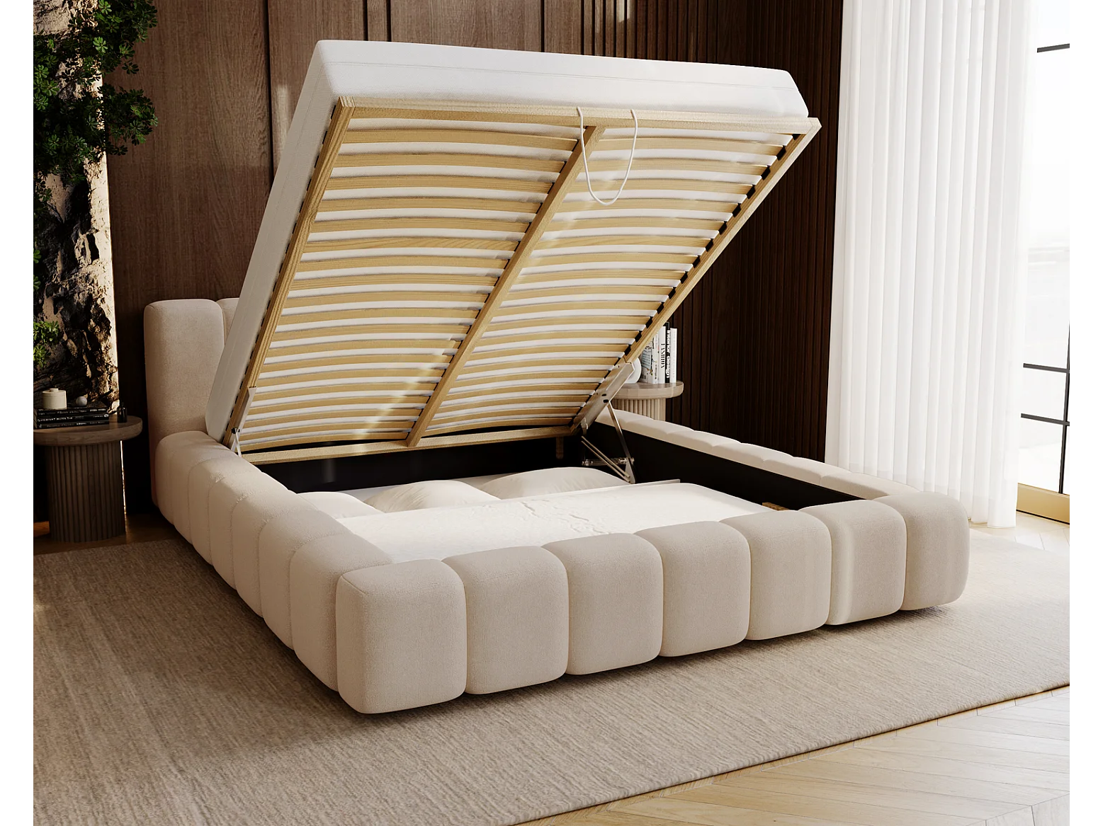 Emporius Bolonia gestoffeerd bed 180 x 200 - bed 180x200 cm, bed met opbergruimte en bedlade - Beige (Komodo 11)
