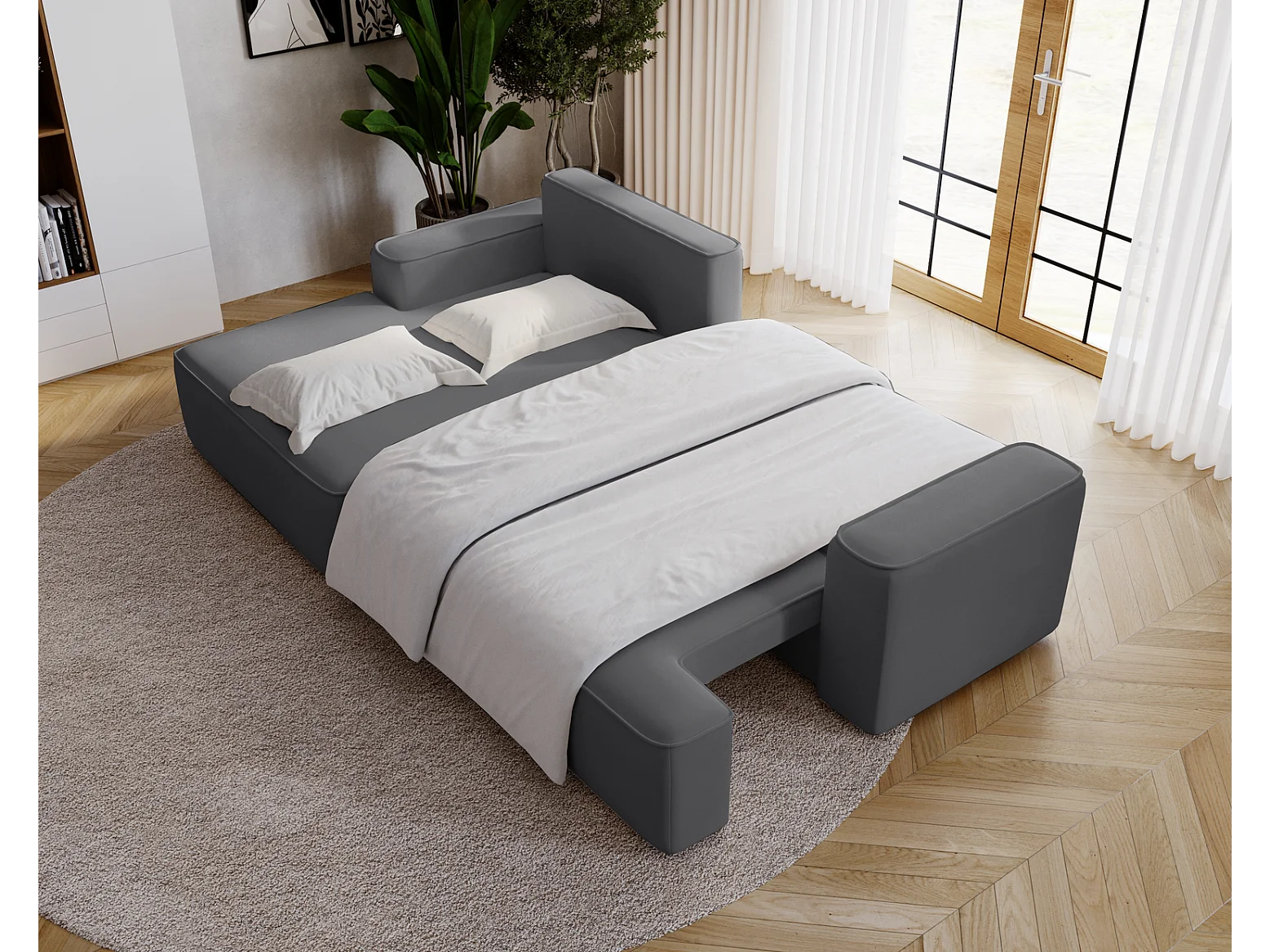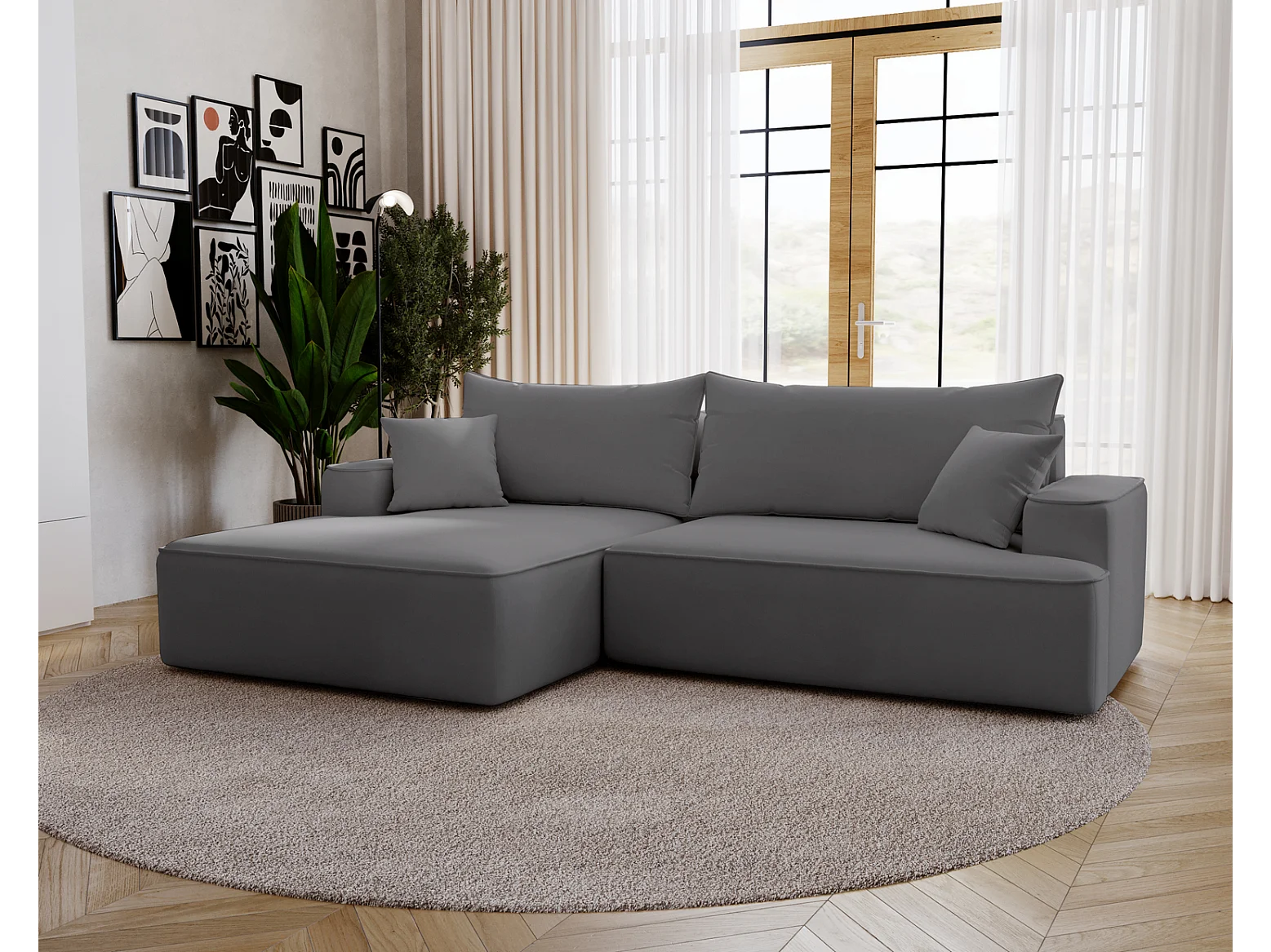 Emporius Dallas Hoekbank L-Vorm - slaapfunctie en bedlade, links - Sofa 250 cm, fluweel grijs (Komodo 21)