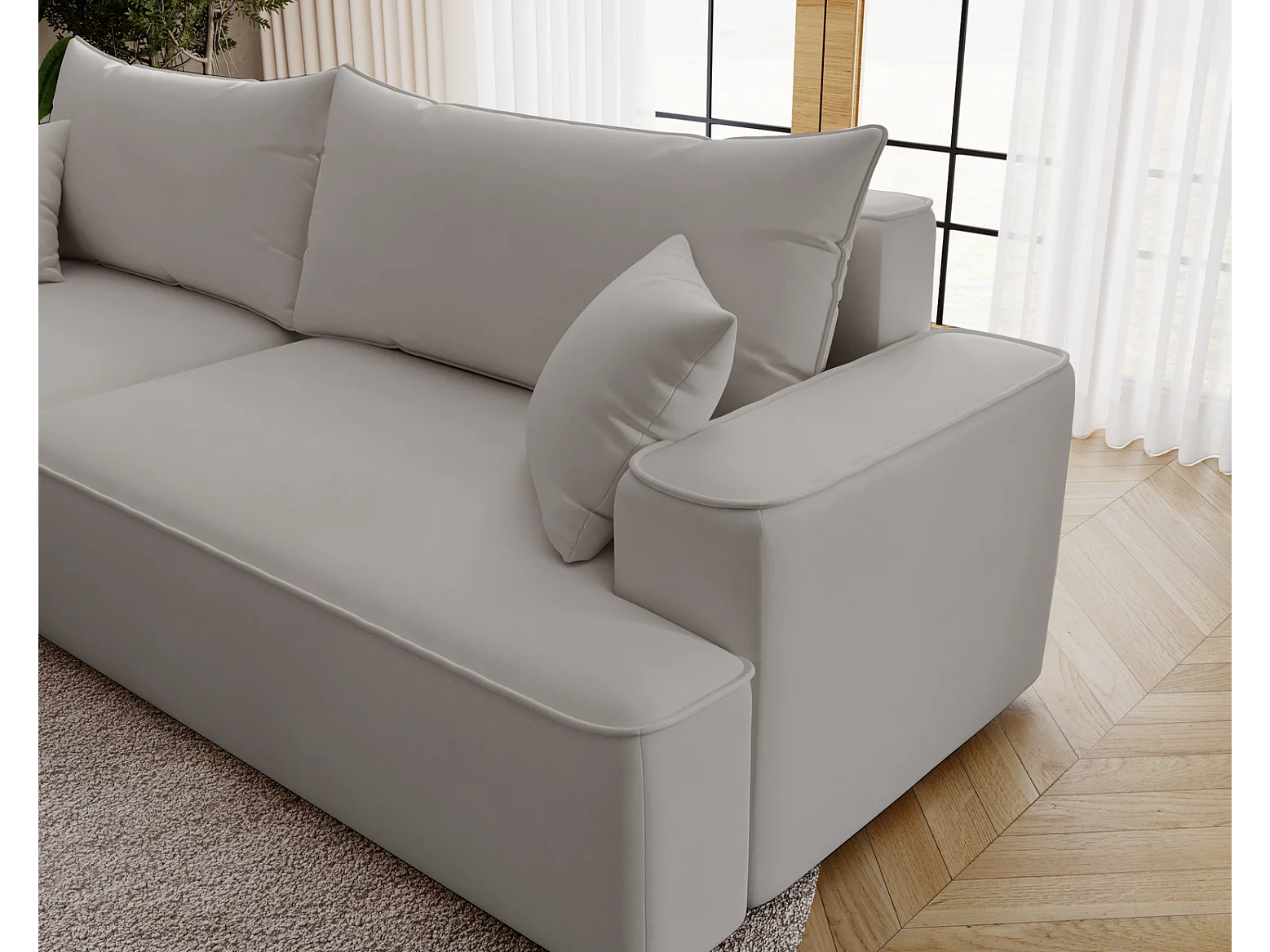 Emporius Dallas Hoekbank L-Vorm - slaapfunctie en bedlade, links - Sofa 250 cm, fluweel lichtgrijs (Komodo 20)