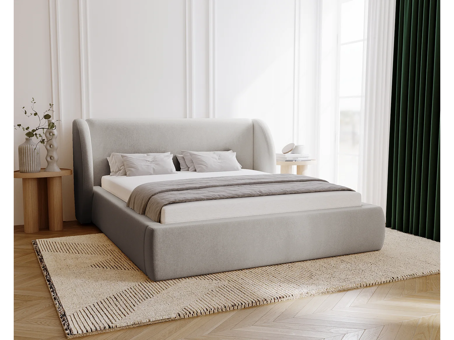 Emporius Gestoffeerd bed 140x200 cm Barcelona - opbergruimte, groot hoofdeinde, fluwelen Lichtgrijs (Komodo 20)