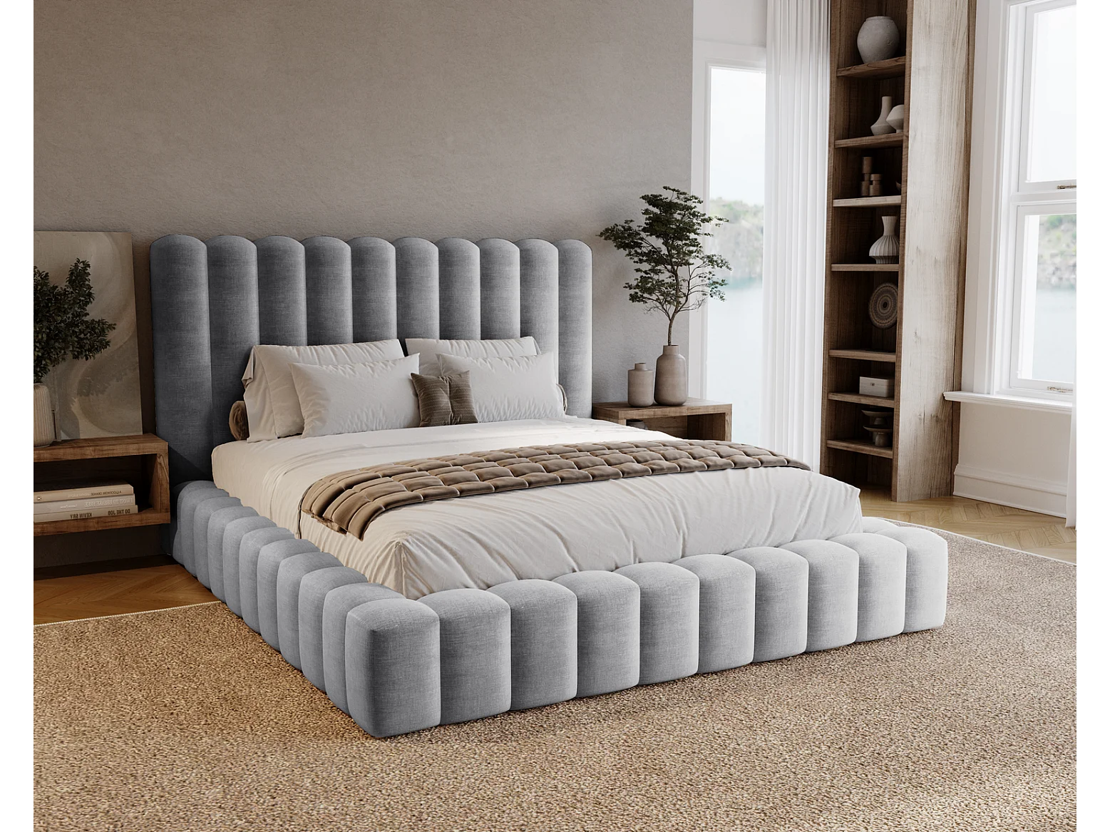 Emporius Gestoffeerd bed 140x200 cm Elise - bed 140 x 200 met opbergruimte, fluwelen Lichtgrijs (Ikoo 19)
