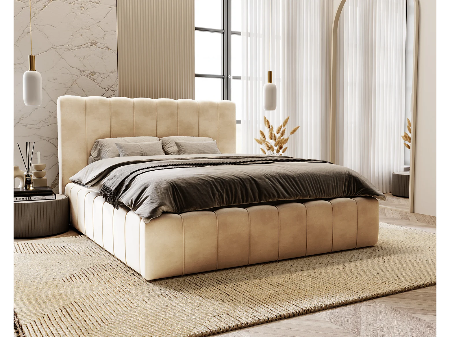 Emporius Gestoffeerd Bed 140x200 Lisbon - bed met opbergruimte, Tweepersoonsbed - Slaapkamer, Tienerkamer - Fluweel Beige (Magic Velvet 2201)