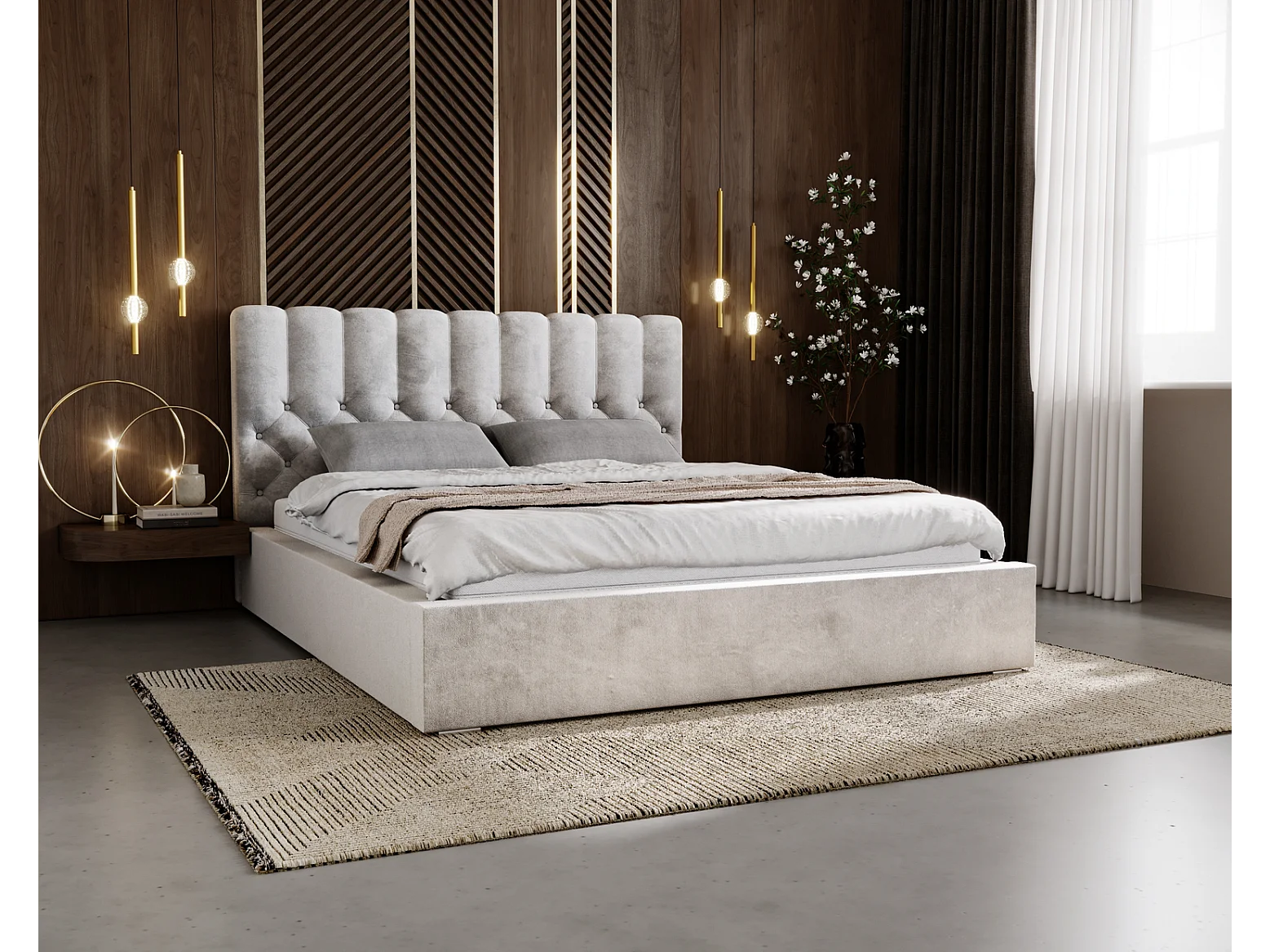 Emporius gestoffeerd bed 140x200 Sevilla, glamourstijl - Tweepersoonsbed 140x200 cm - fluwelen Lichtgrijs (Magic Velvet 2218)