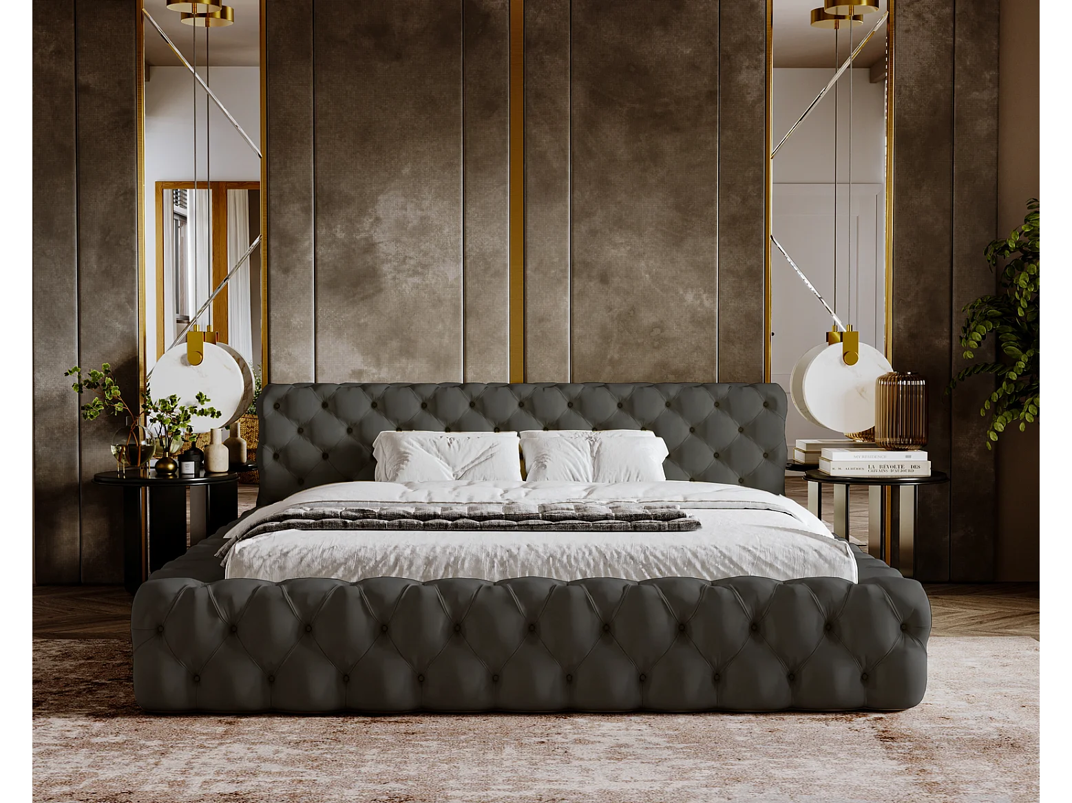 Emporius gestoffeerd bed 140x200 Vigo, bed met lattenbodem - tweepersoonsbed 140x200 cm, groot hoofdeinde - fluwelen Donkergrijs (Amor Velvet 4321)