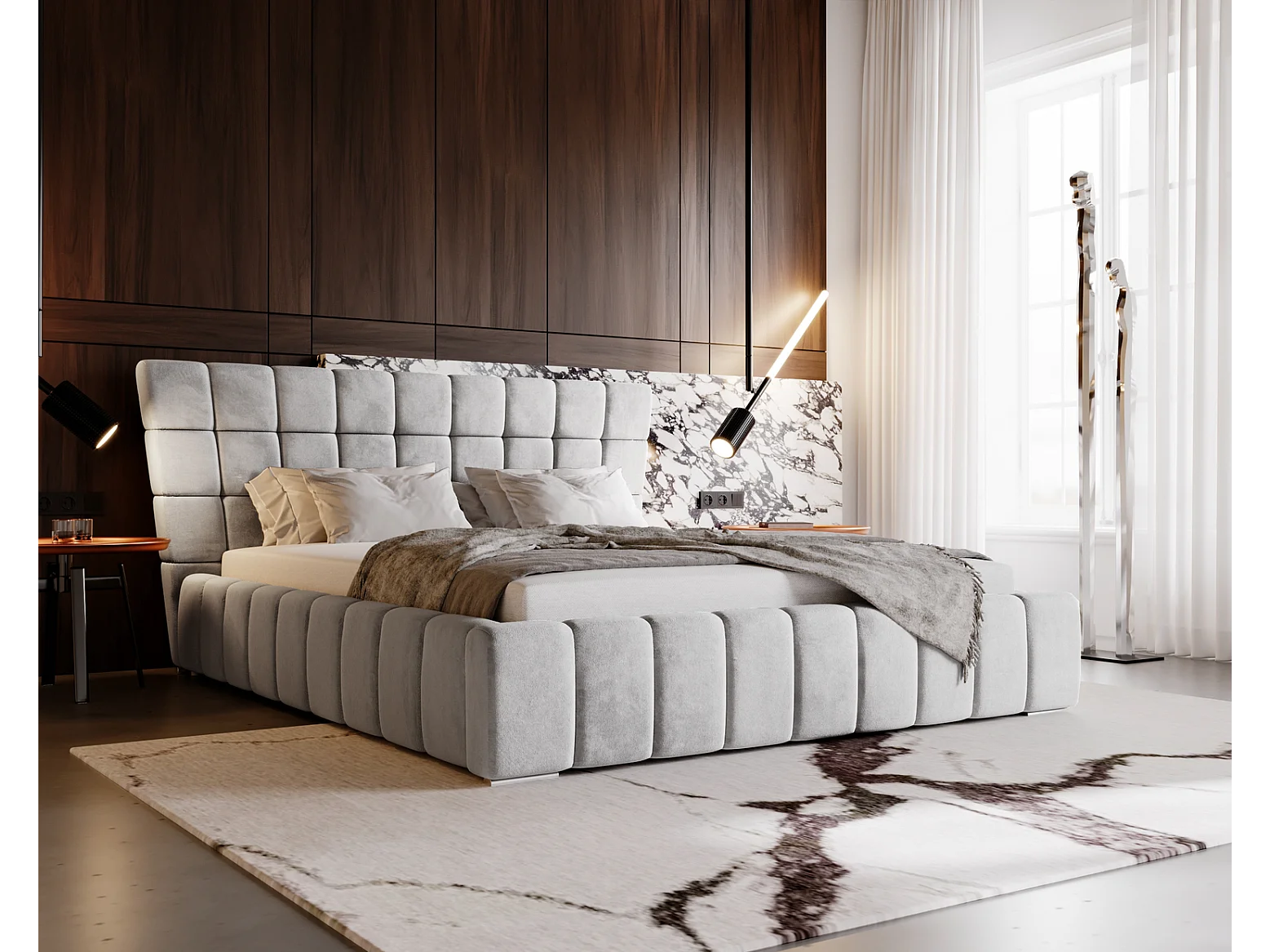 Emporius gestoffeerd bed 160 x 200 cm Deluxe, bed met opbergruimte, fluweel Lichtgrijs (Magic Velvet 2218)