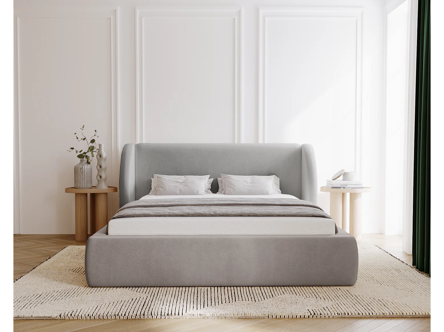 Emporius Gestoffeerd bed 160x200 cm Barcelona - opbergruimte, groot hoofdeinde, fluwelen Lichtgrijs (Komodo 20)