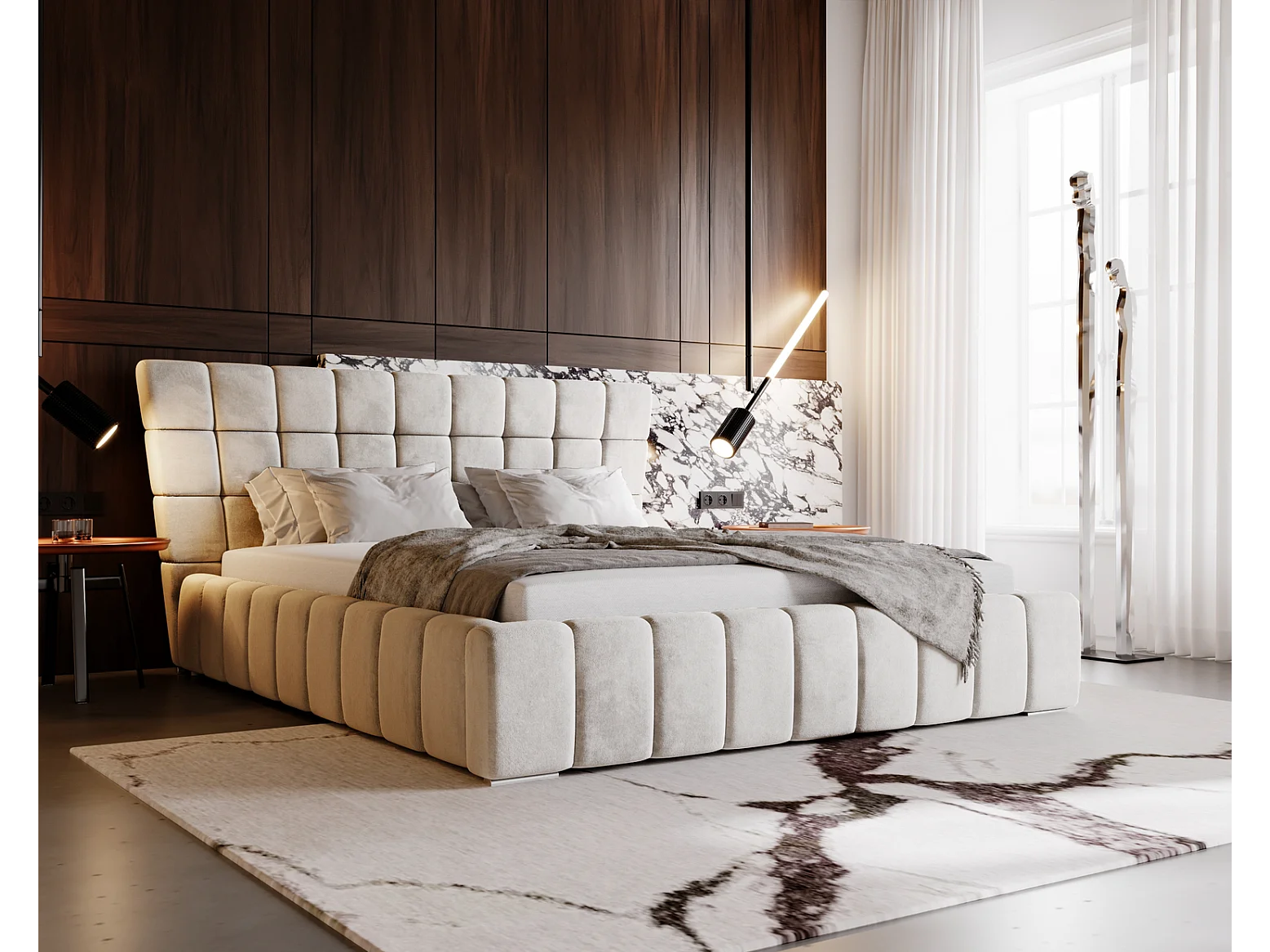Emporius gestoffeerd bed 180 x 200 cm Deluxe, bed met opbergruimte, fluweel Beige (Magic Velvet 2201)