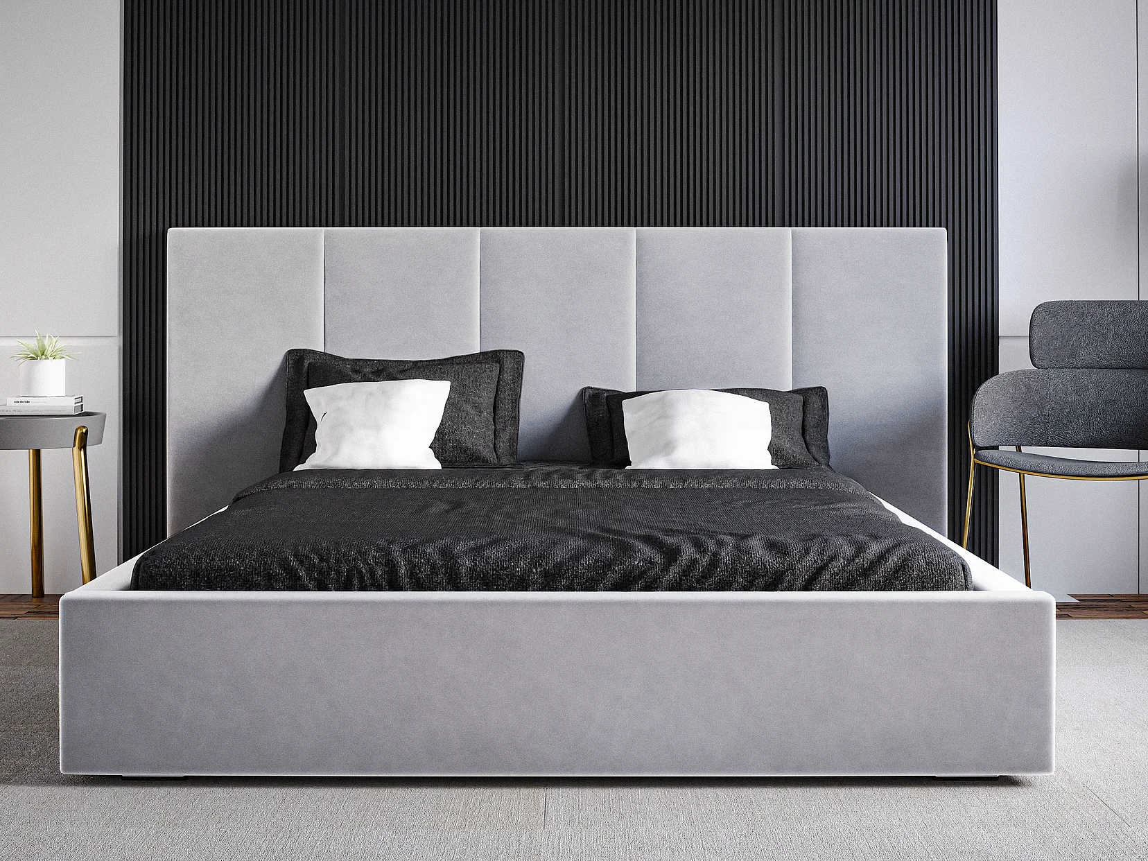Emporius gestoffeerd bed 180 x 200 cm Praga - bed 180x200 met opbergruimte, fluweel Lichtgrijs (Magic Velvet 2218)