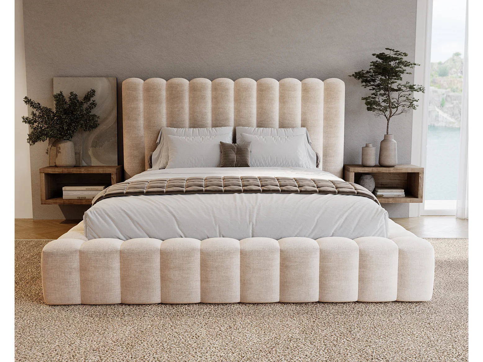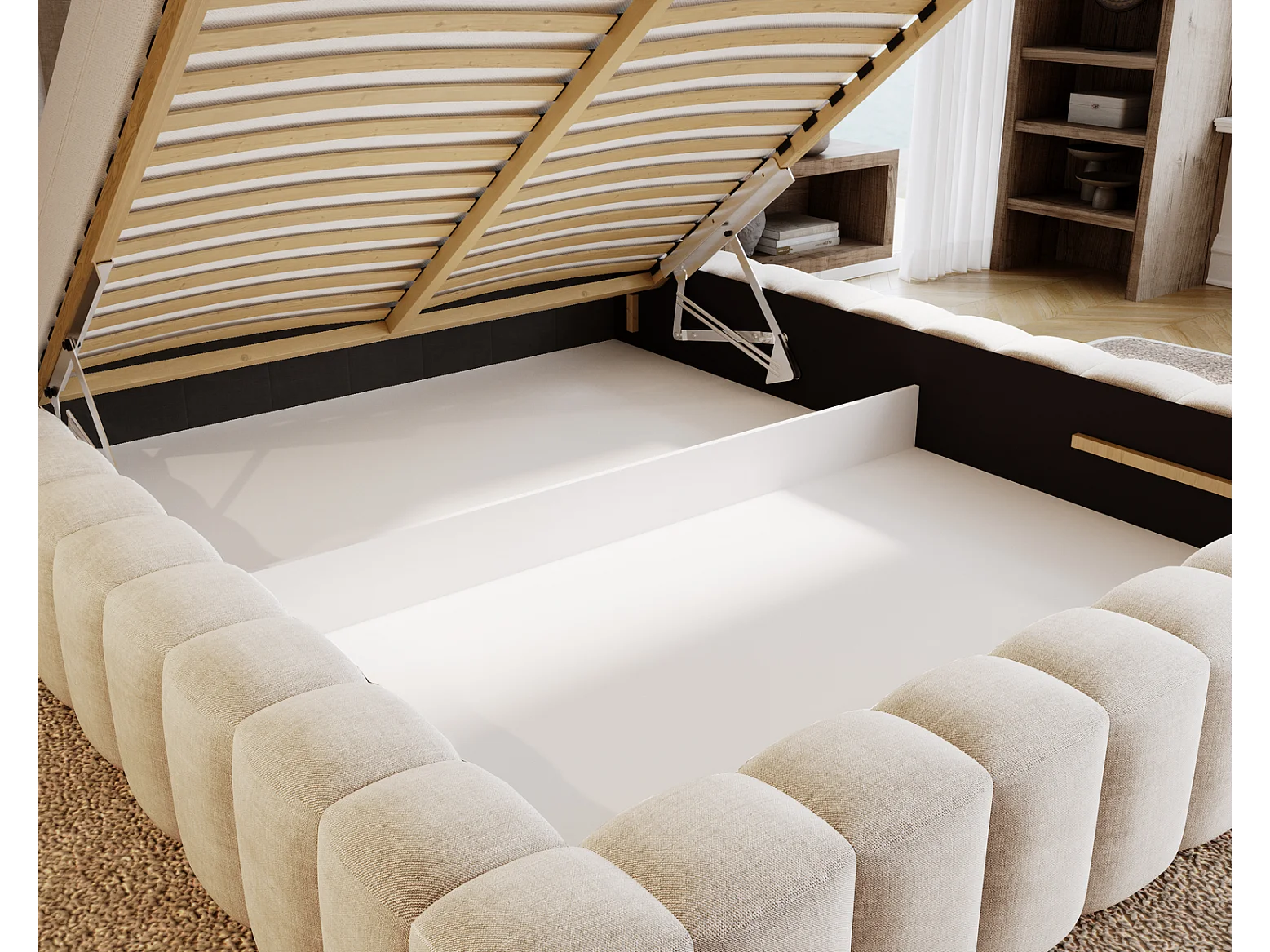 Emporius Gestoffeerd bed 180x200 cm Elise - bed 180 x 200 met opbergruimte, fluwelen Beige (Ikoo 1)