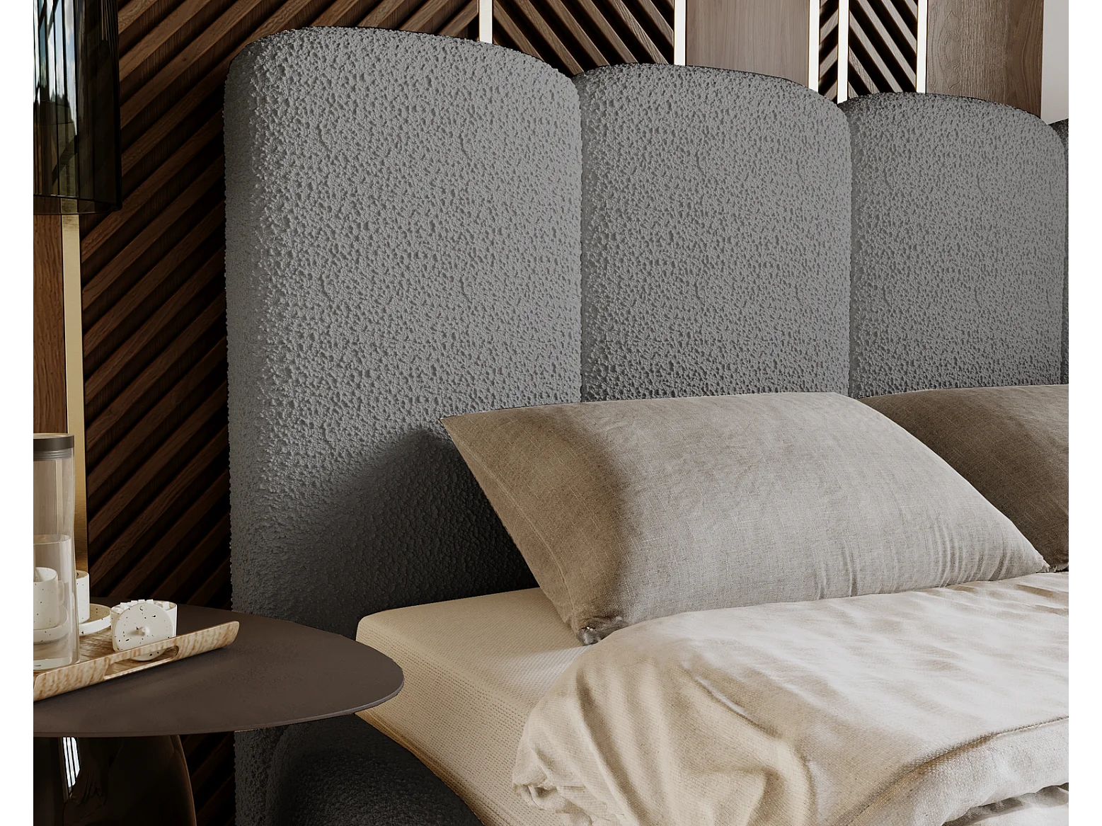 Emporius gestoffeerd bed 180x200 cm Merkad Bouclé - bed met lattenbodem en bedlade, Bouclé - Grijs (Anthology 17)