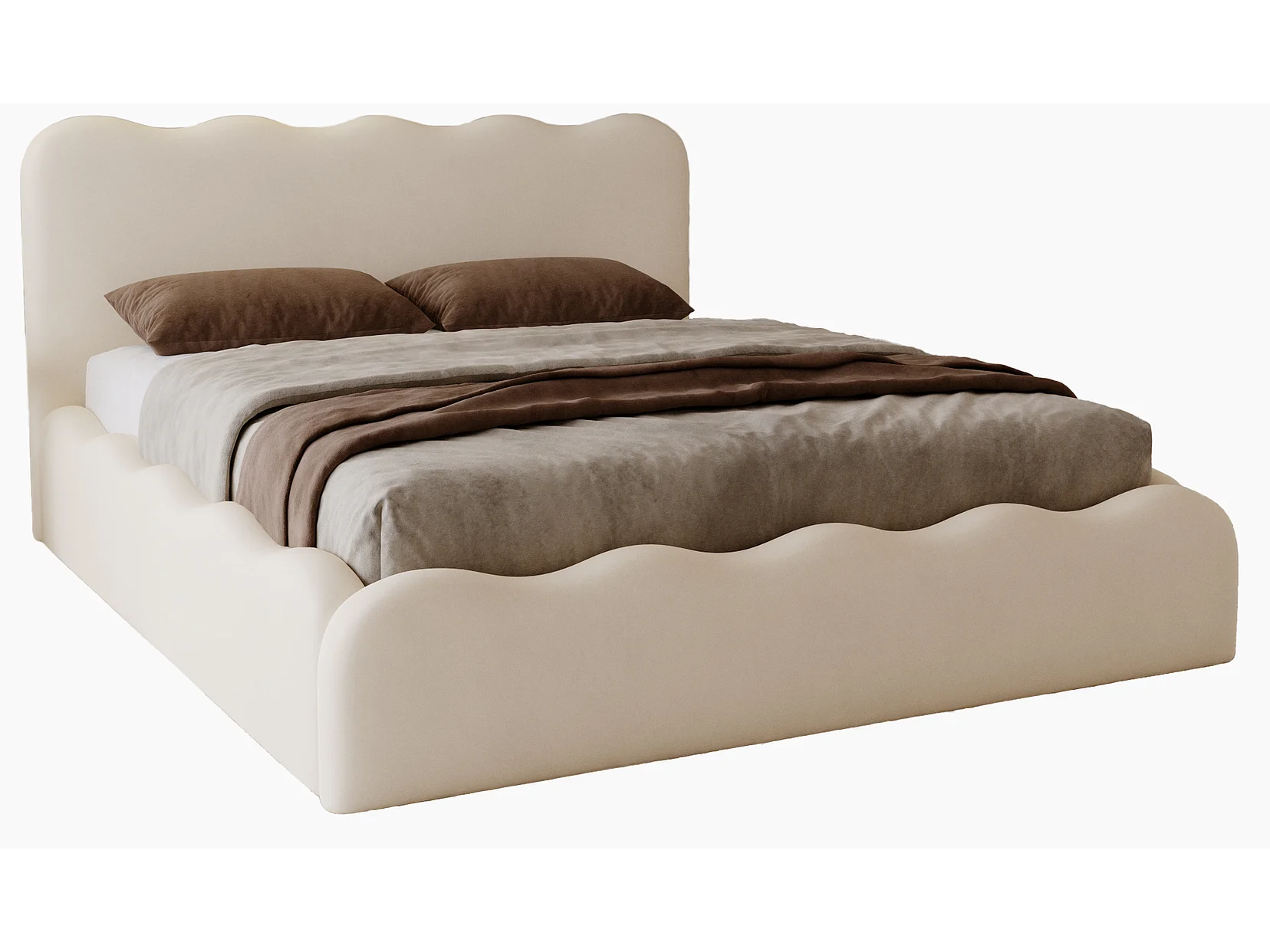 Emporius Gestoffeerd bed 180x200 cm Wave, bed met opbergruimte - fluwelen Beige (Elegance 2)
