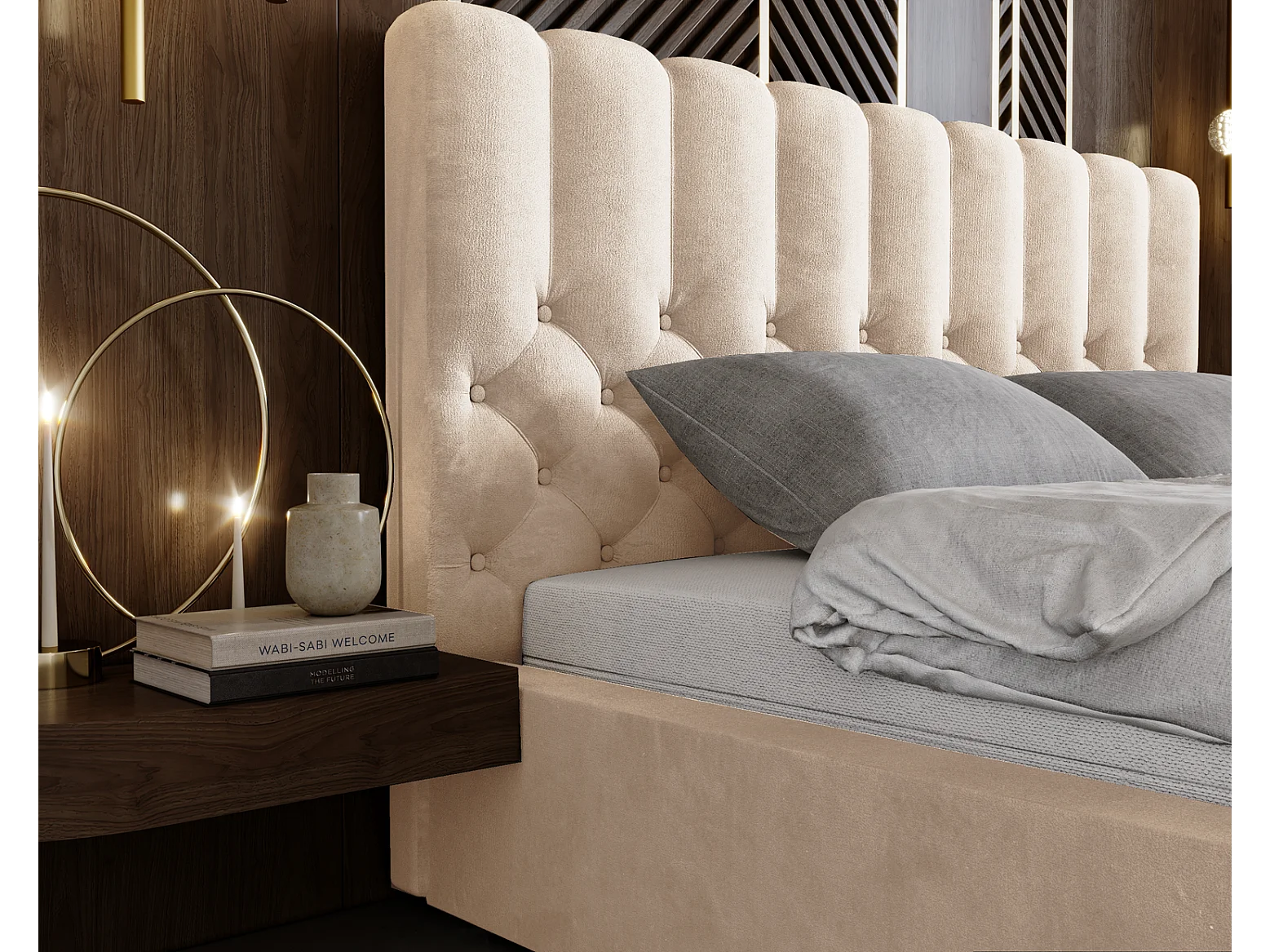 Emporius gestoffeerd bed 180x200 Sevilla, glamourstijl - Tweepersoonsbed 140x200 cm - fluwelen Beige (Magic Velvet 2201)