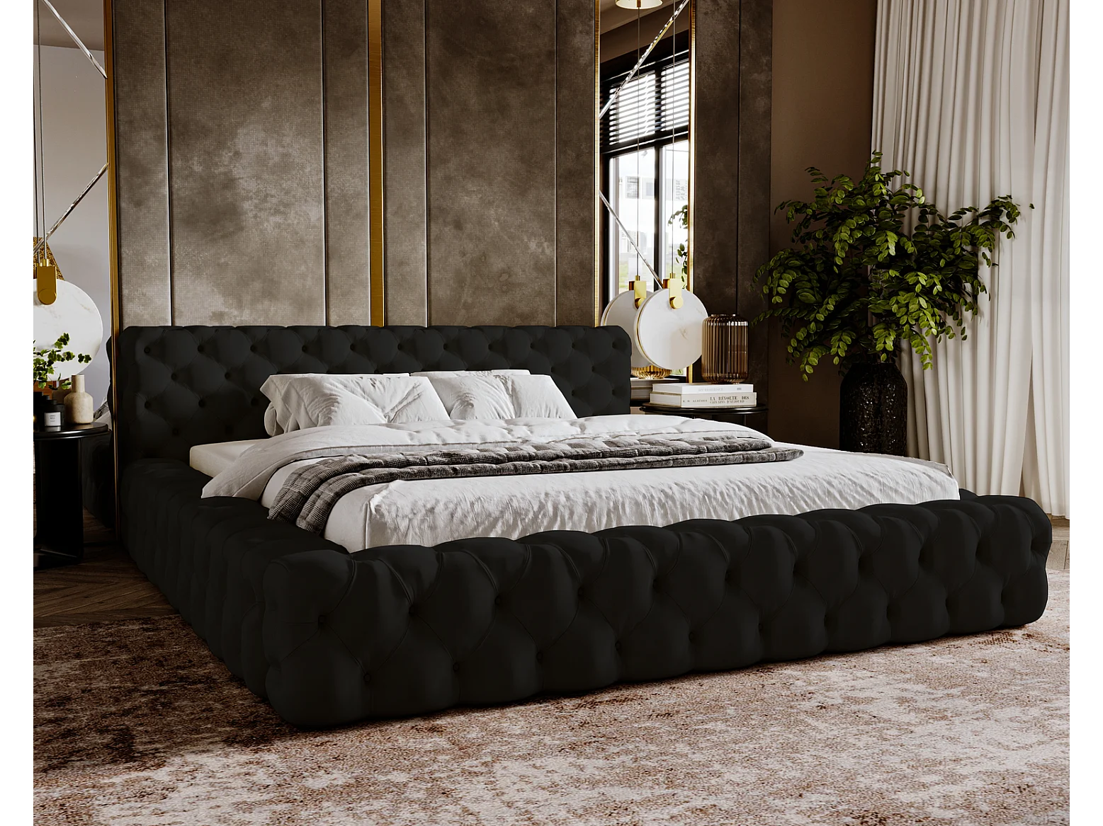 Emporius gestoffeerd bed 180x200 Vigo, bed met lattenbodem - tweepersoonsbed 180x200 cm, groot hoofdeinde - fluwelen Zwart (Amor Velvet 4322)