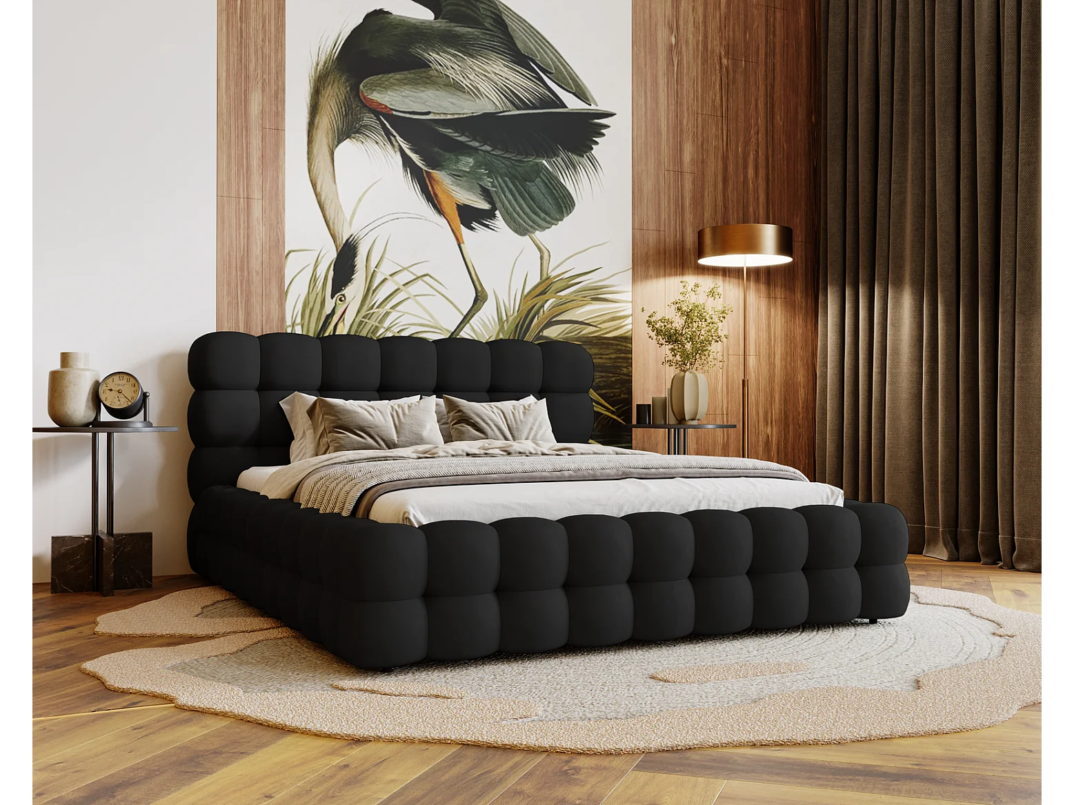 Emporius Gestoffeerd bed 200x200 cm Parlas Bis - luxe bed met met opbergruimte, fluwelen Zwart (Amor Velvet 4322)