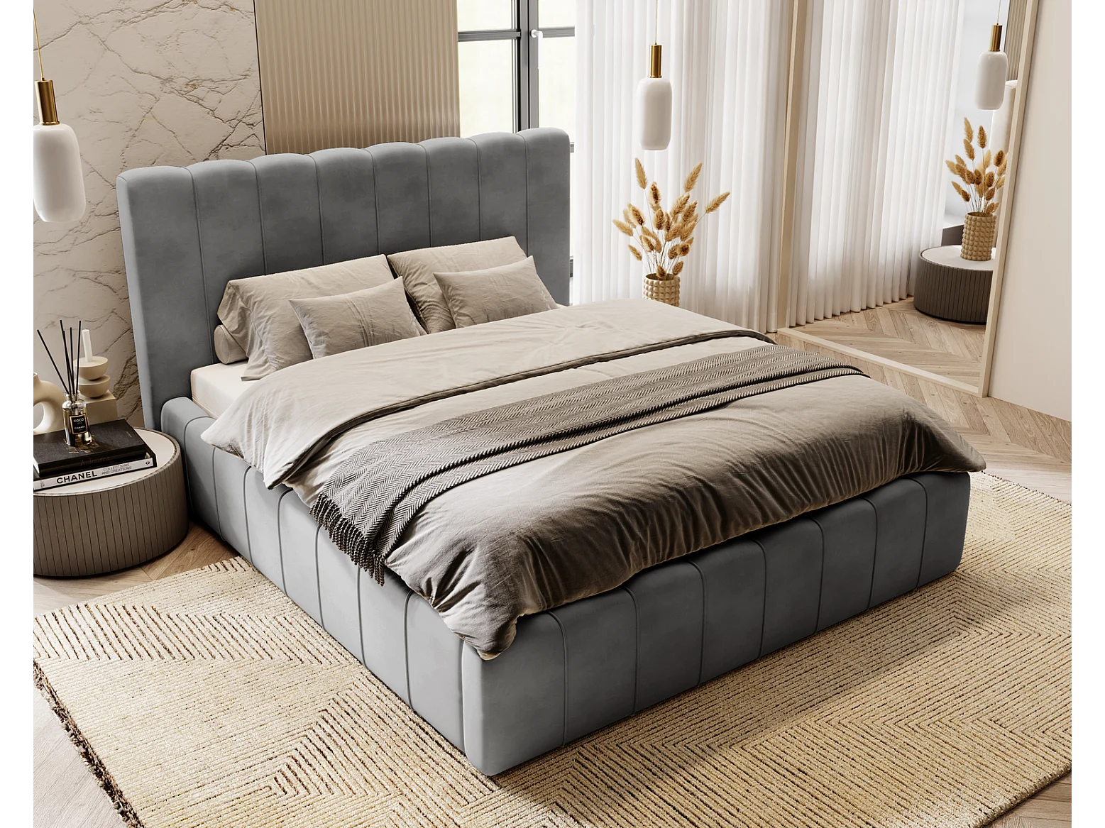 Emporius Gestoffeerd Bed 200x200 Lisbon - bed met opbergruimte, Tweepersoonsbed - Slaapkamer, Tienerkamer - Fluweel Grijs (Magic Velvet 2217)