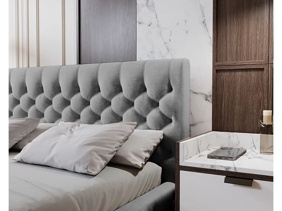 Emporius Gestoffeerd bed met groot hoofdeinde Elira tweepersoonsbed 160x200 - lattenbodem, bedlade, fluwelen - Grijs (Magic Velvet 2217)