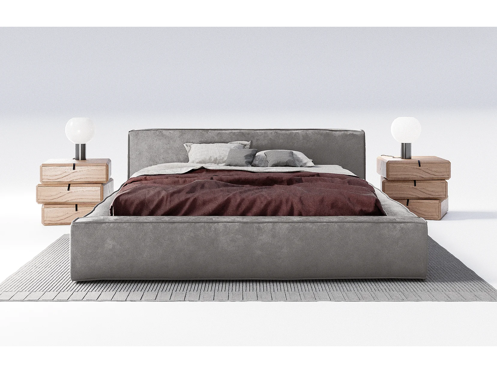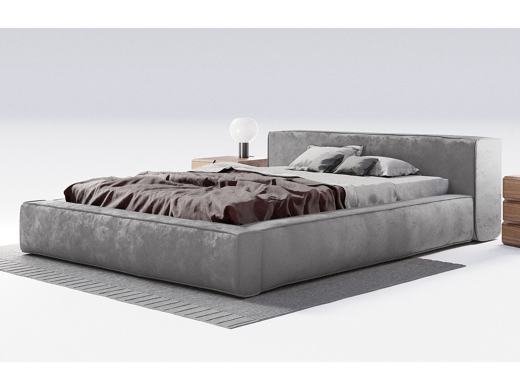 Emporius gestoffeerd bed tweepersoonsbed 140x200 Bueno - lattenbodem, opbergruimte - fluweel - Grijs (Infinity 15)