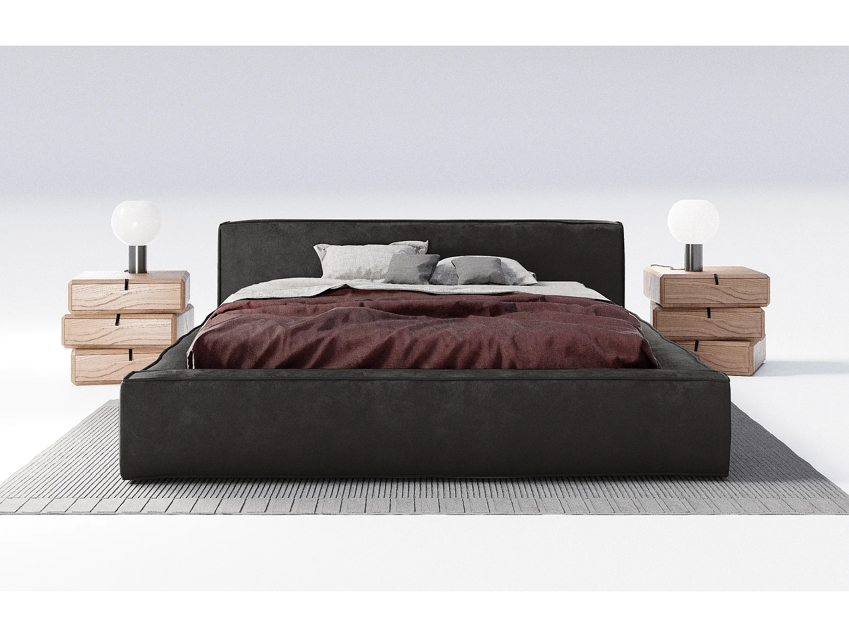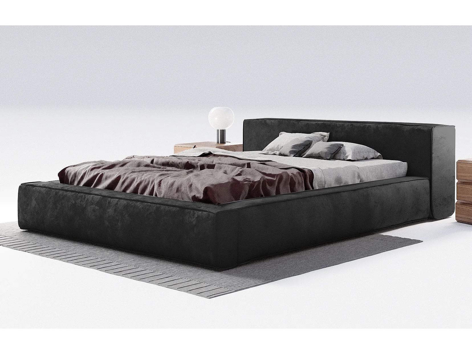 Emporius gestoffeerd bed tweepersoonsbed 180x200 Bueno - lattenbodem, opbergruimte - fluweel - Zwart (Infinity 18)