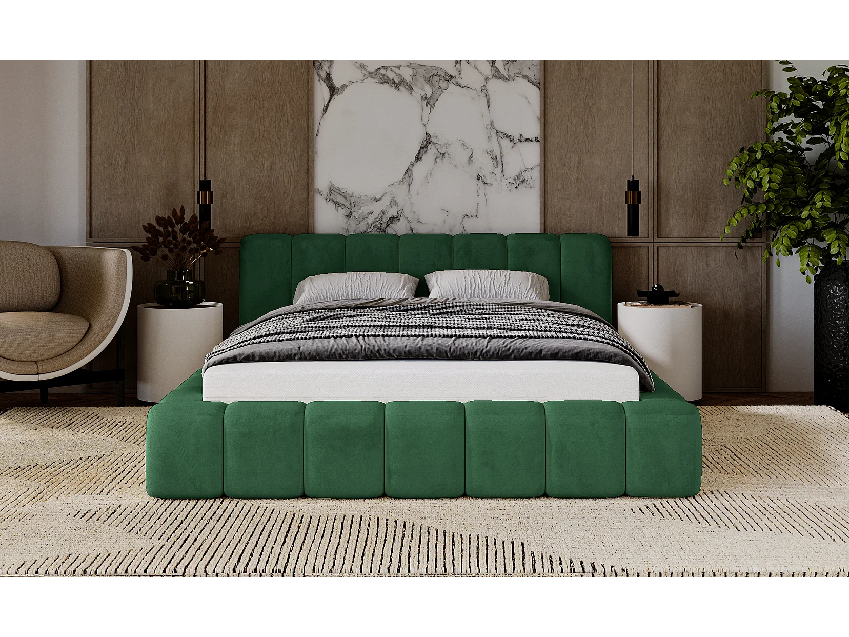 Emporius gestoffeerd tweepersoons bed 140x200 Bolonia - bed met opbergruimte - bed met lattenbodem - fluweel Groen (Magic Velvet 2225)