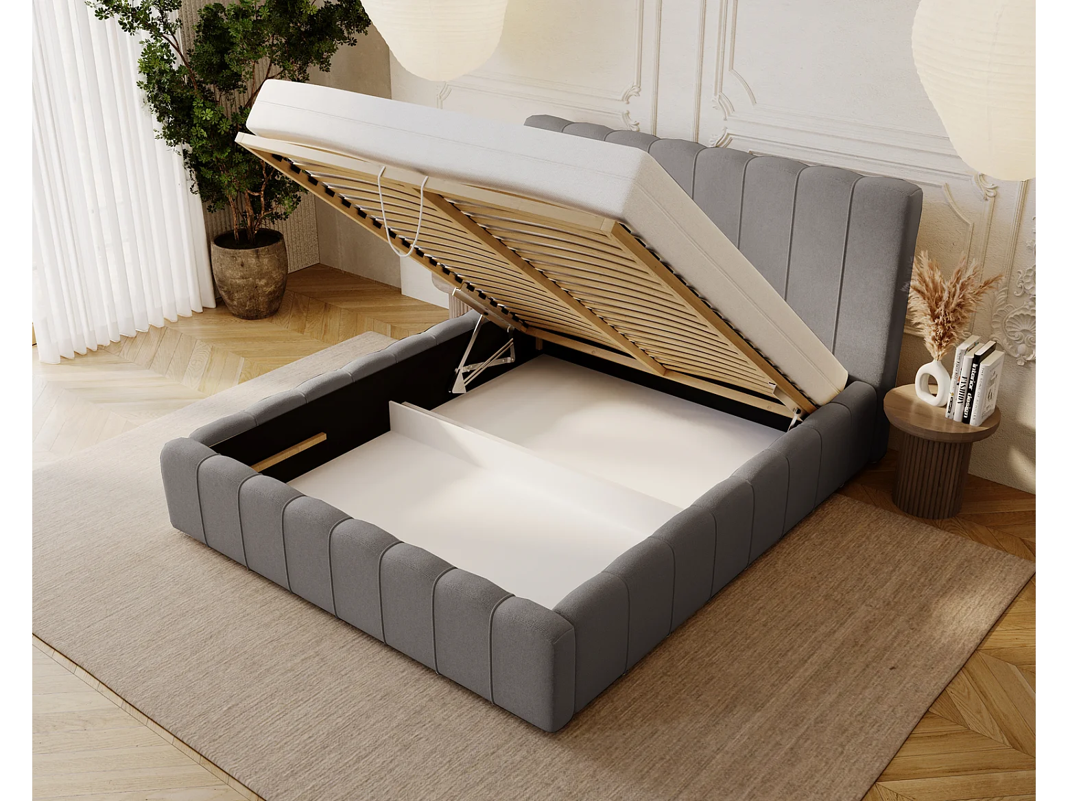 Emporius Lisbon gestoffeerd bed 140x200 met opbergruimte - bed 140x200, tweepersoonsbed fluwelen Grijs (Komodo 21)