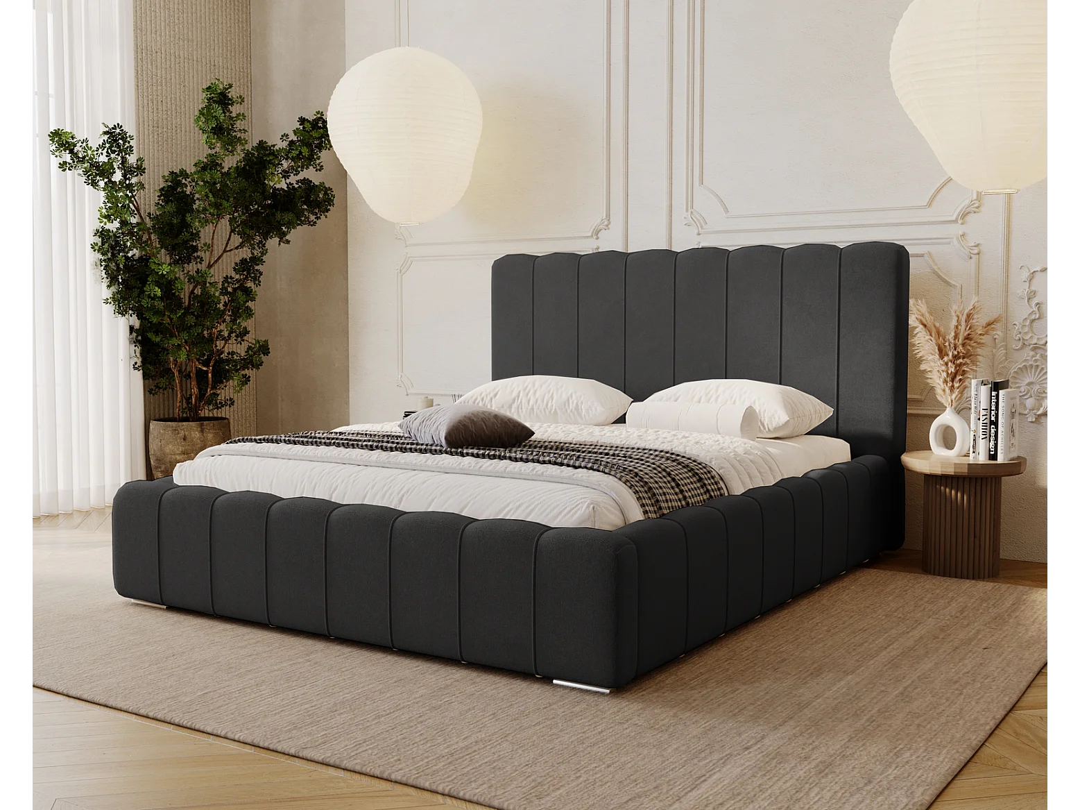 Emporius Lisbon gestoffeerd bed 180x200 met opbergruimte - bed 180x200, tweepersoonsbed fluwelen Zwart (Komodo 23)