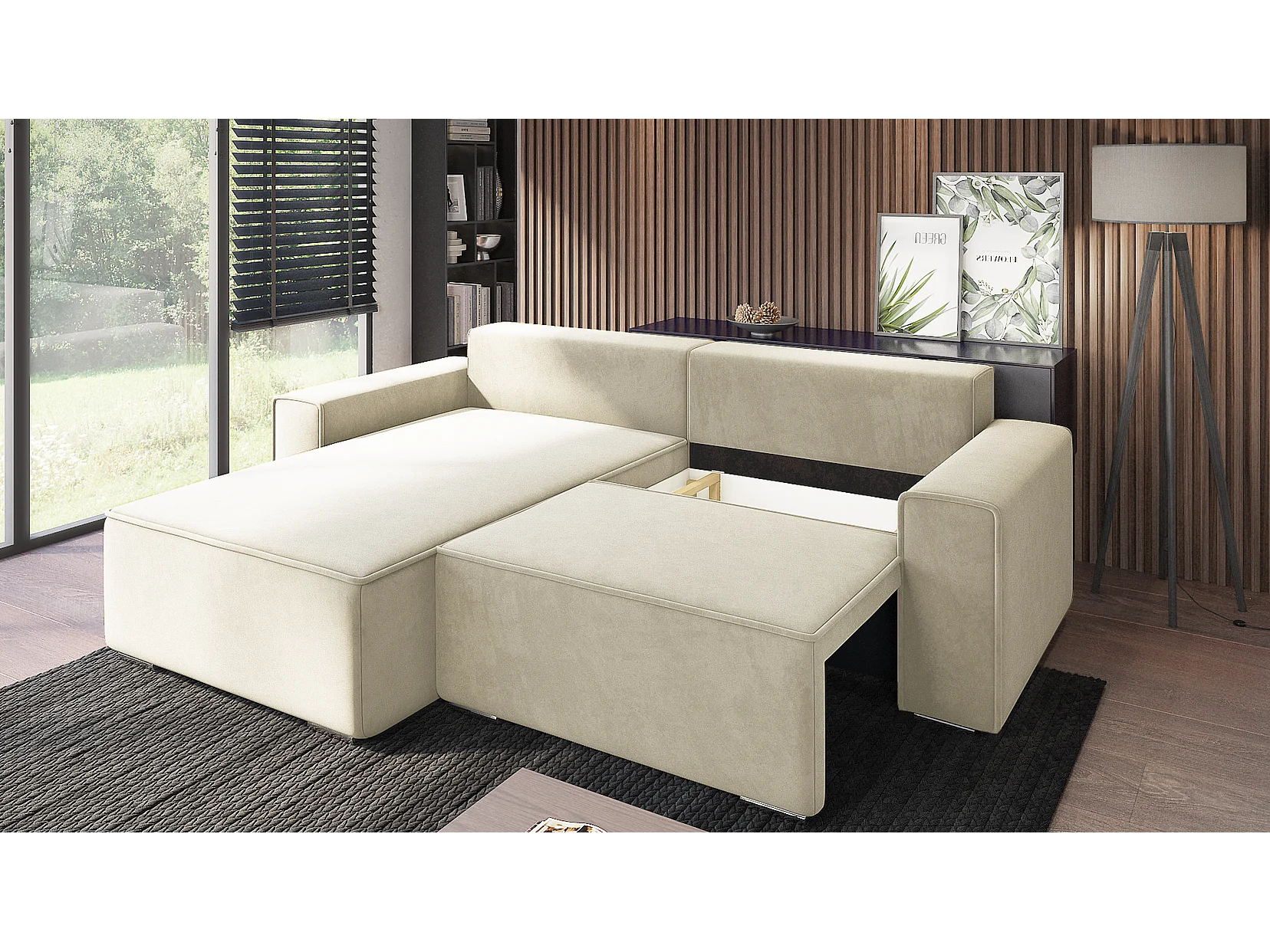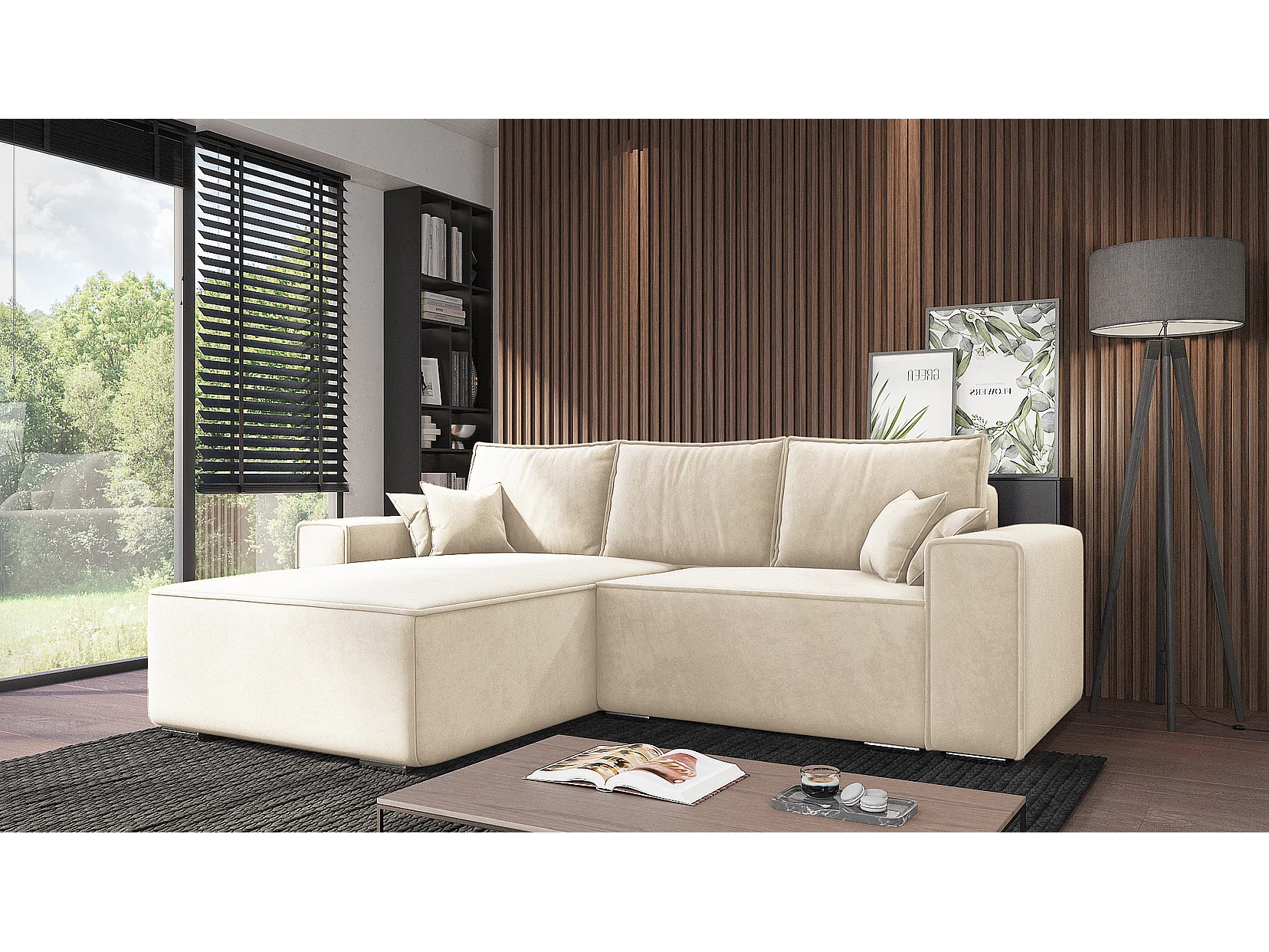Emporius Lora links Hoekbank 250 cm, sofa met slaapfunctie en bedlade, woonkamerbank, 3-zitsbank crème (Amor Velvet 4323)
