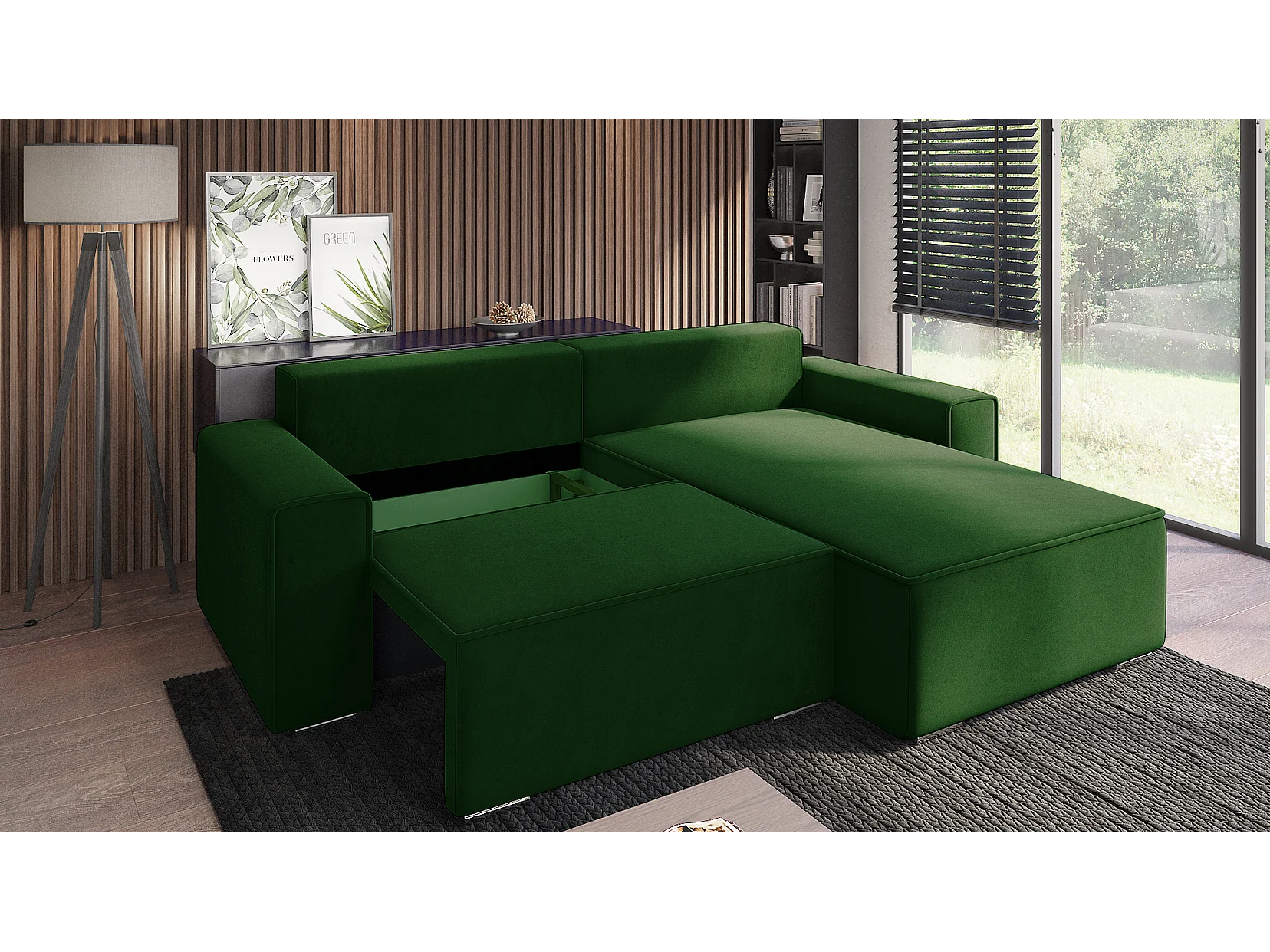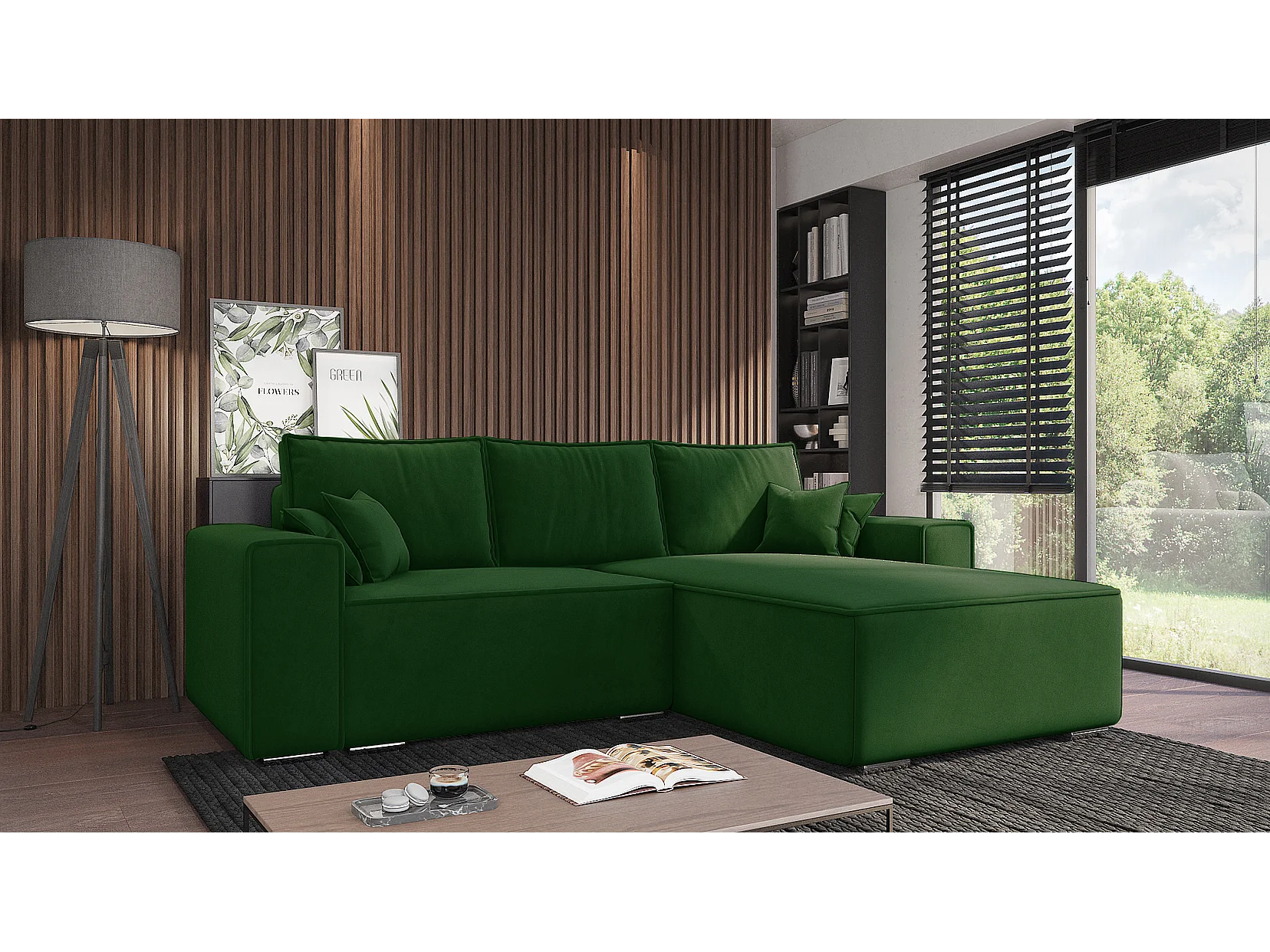 Emporius Lora rechts Hoekbank 250 cm, sofa met slaapfunctie en bedlade, woonkamerbank, 3-zitsbank groen (Amor Velvet 4311)