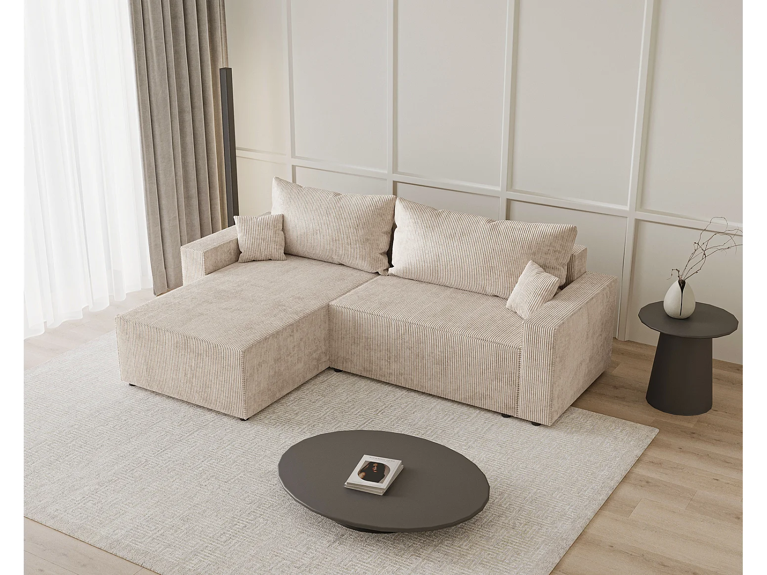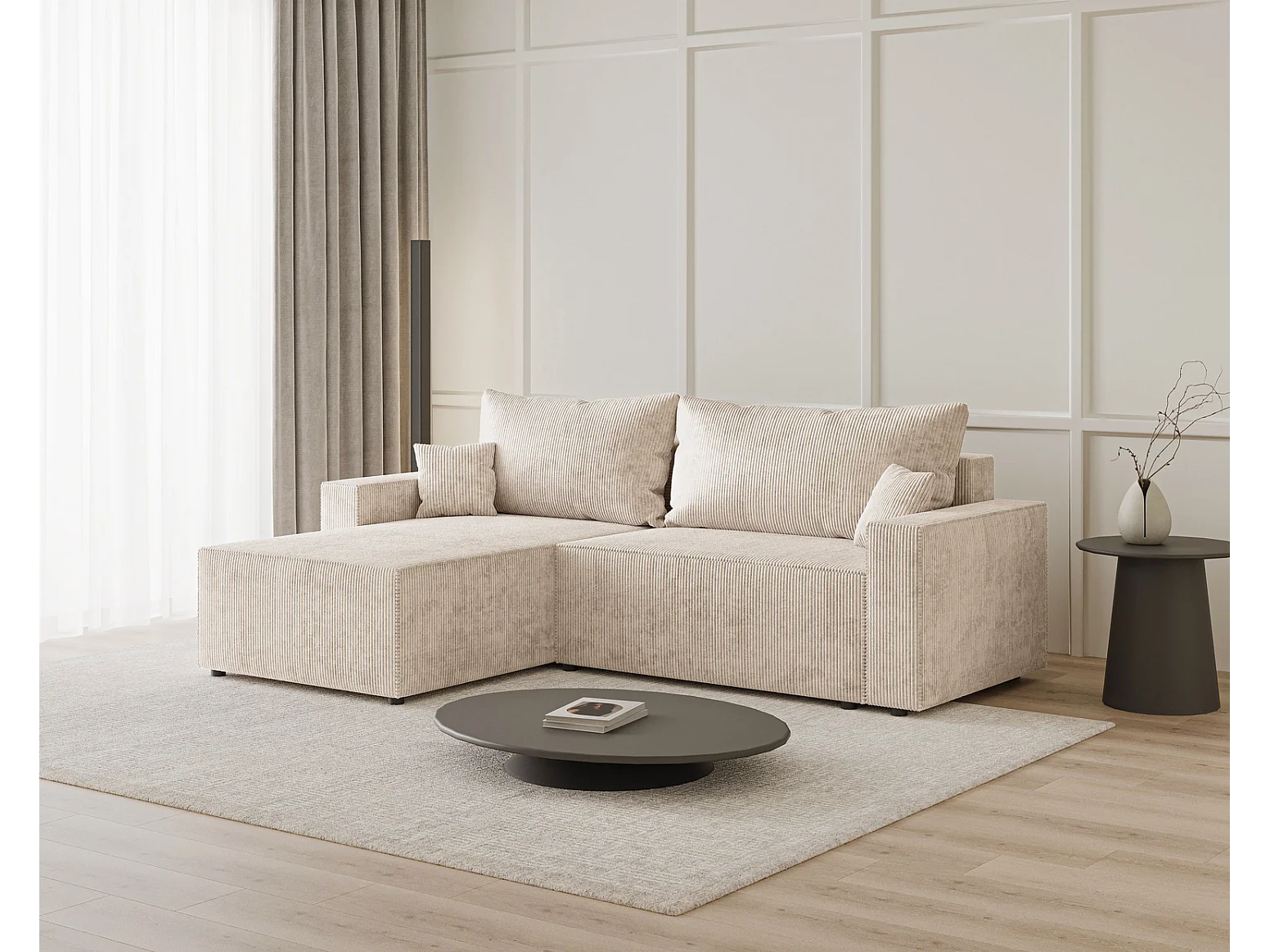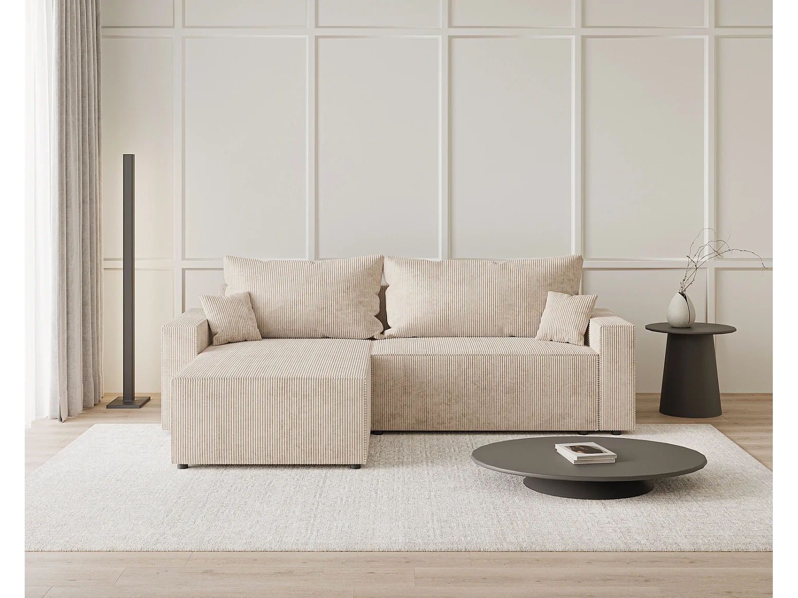 Emporius Lugo Hoekbank 250 cm - L-Vorm, sofa met slaapfunctie, links, ribfluweel Beige (LincolnD 4)