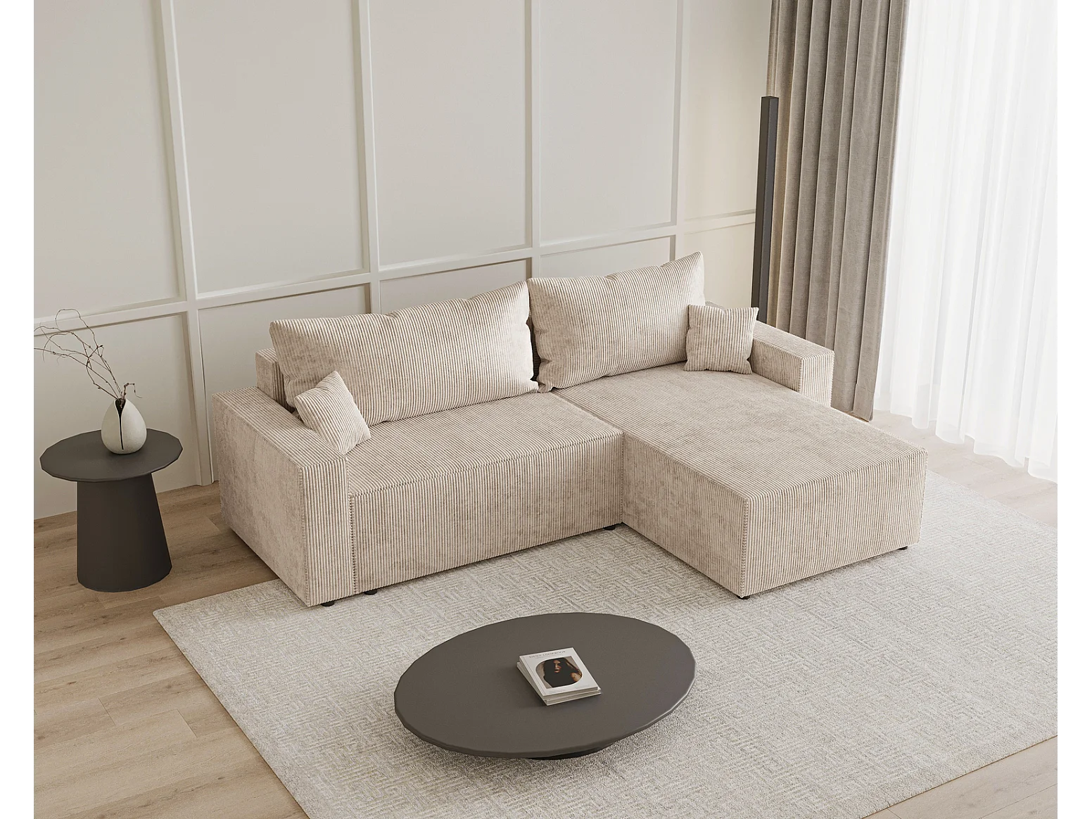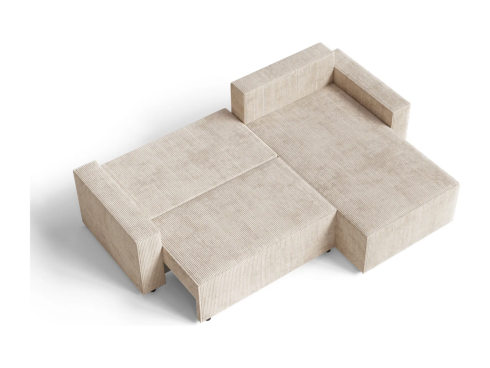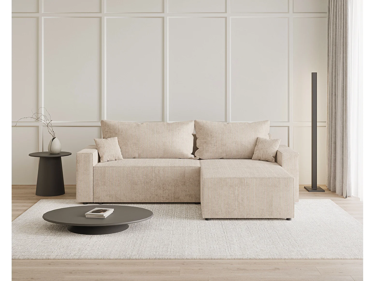 Emporius Lugo Hoekbank 250 cm - L-Vorm, sofa met slaapfunctie, rechts, ribfluweel Beige (LincolnD 4)