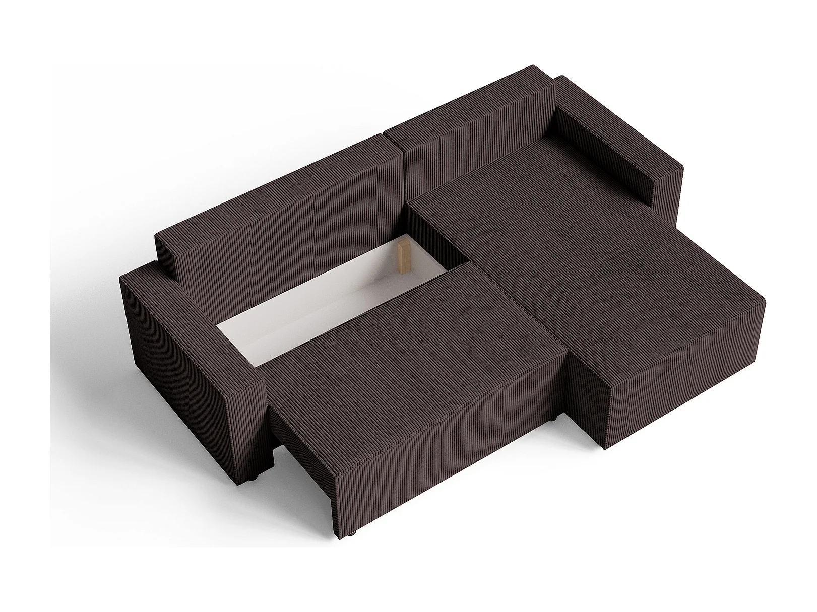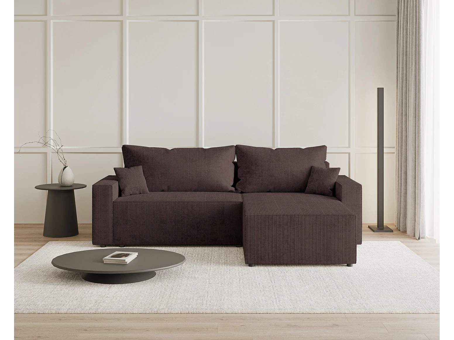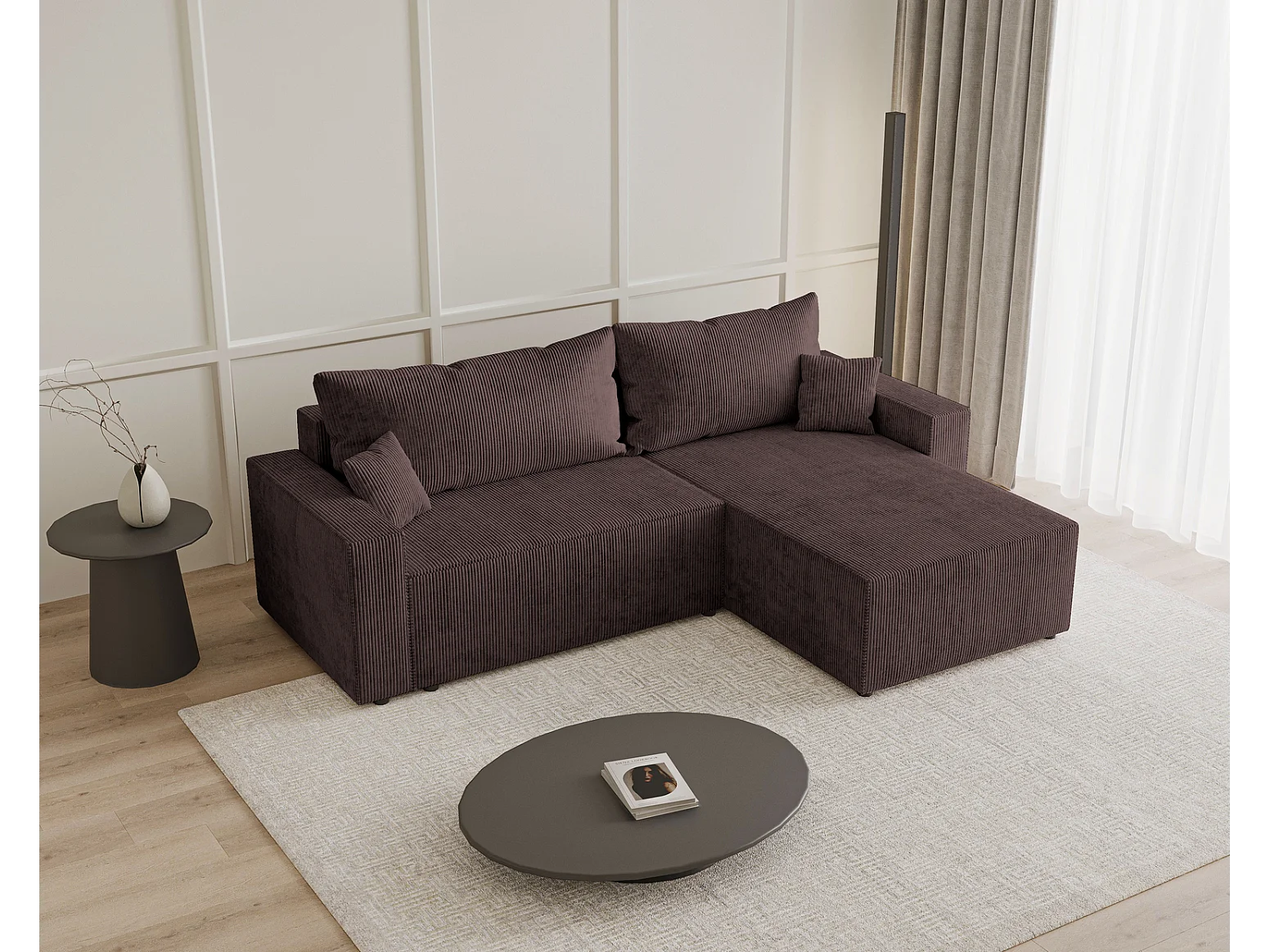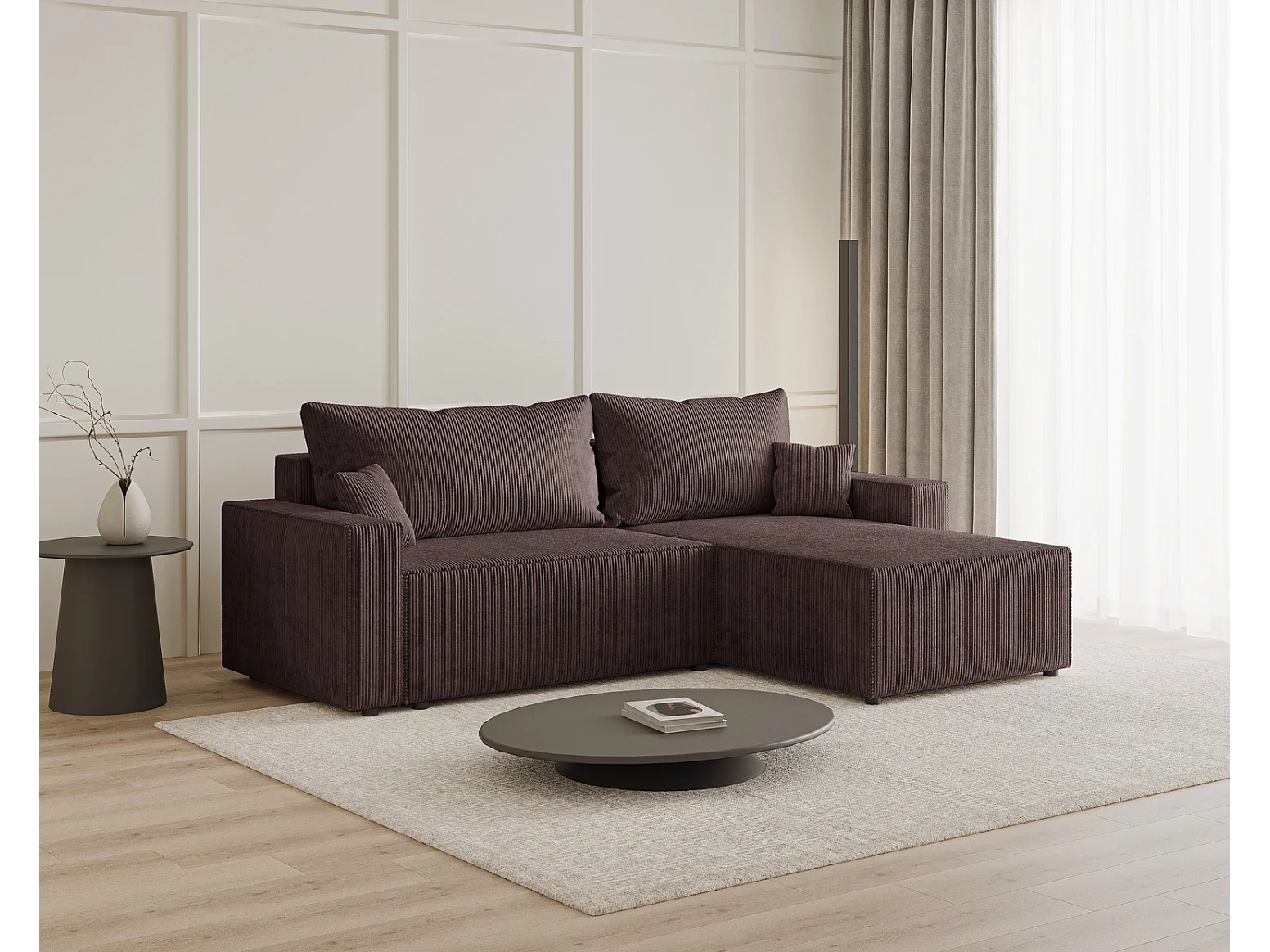 Emporius Lugo Hoekbank 250 cm - L-Vorm, sofa met slaapfunctie, rechts, ribfluweel Bruin (LincolnD 29)