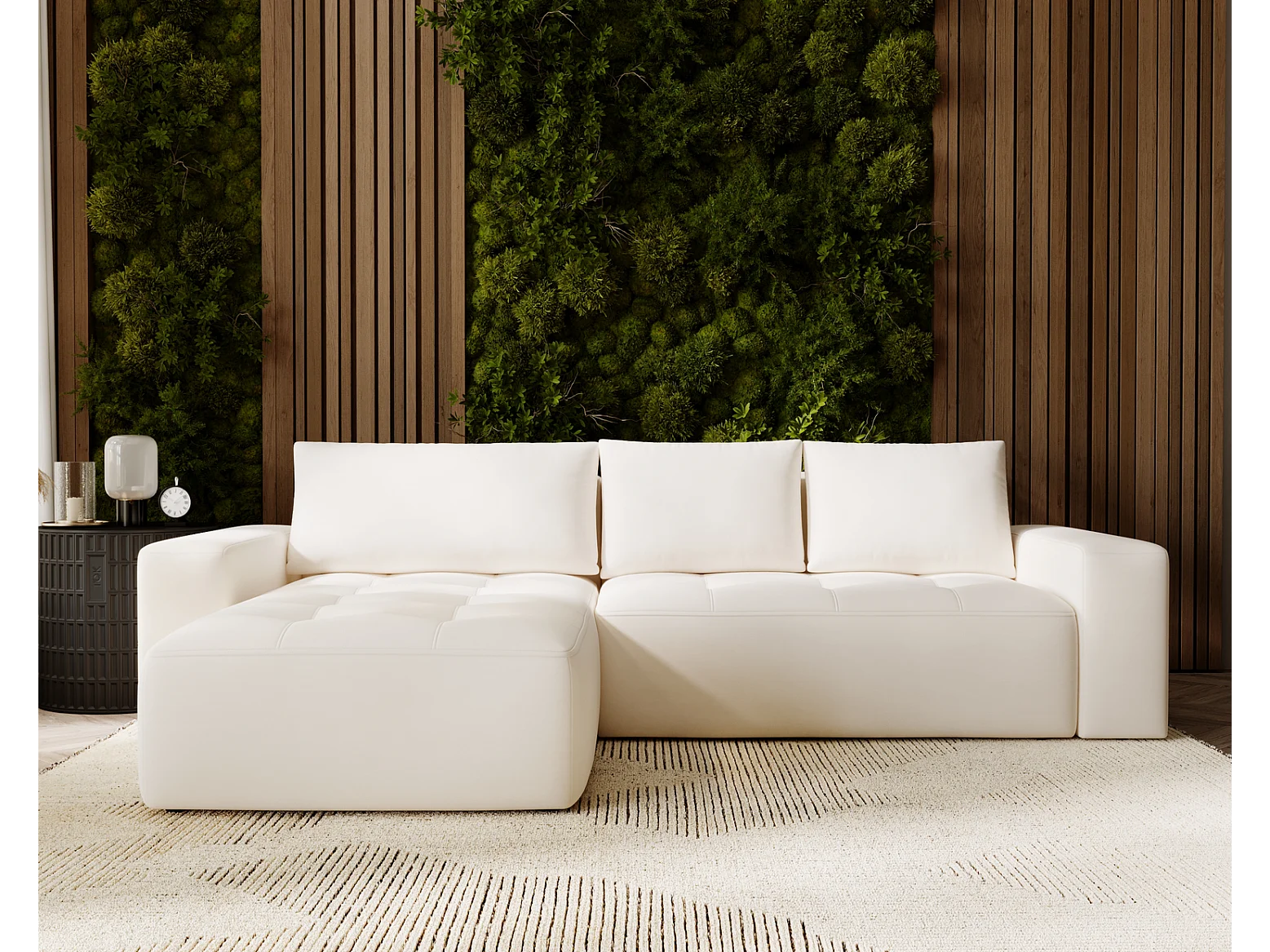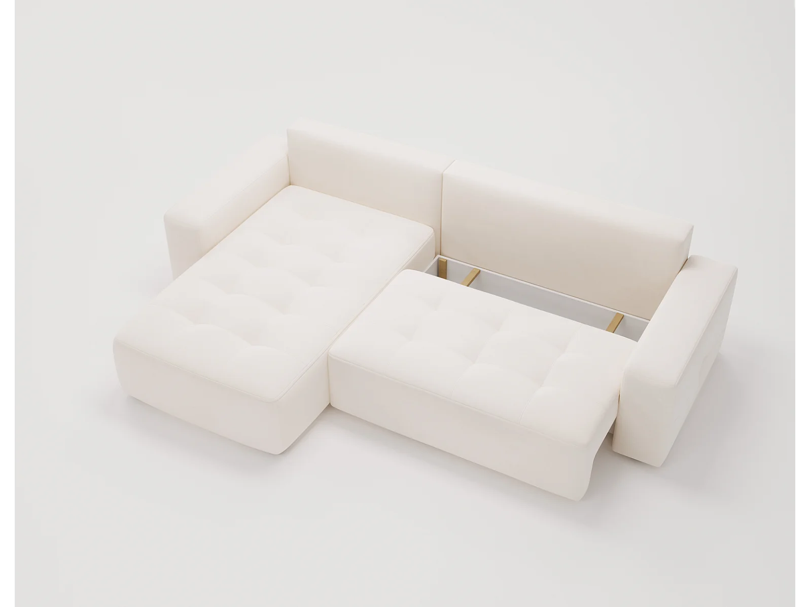 Emporius Nevada Hoekbank 250 cm met slaapfunctie et bedlade, links, fluweel crème (Trinity 1)
