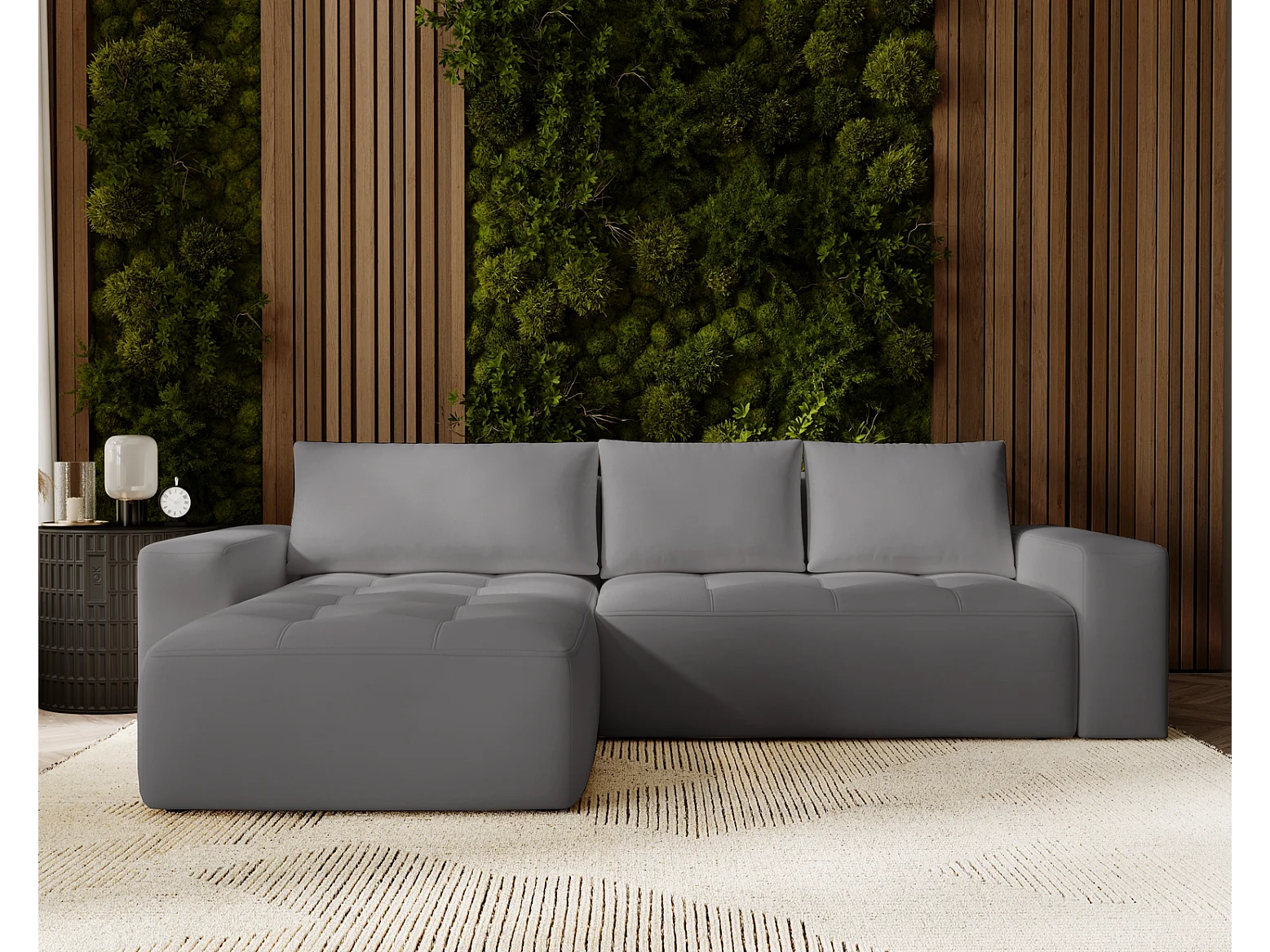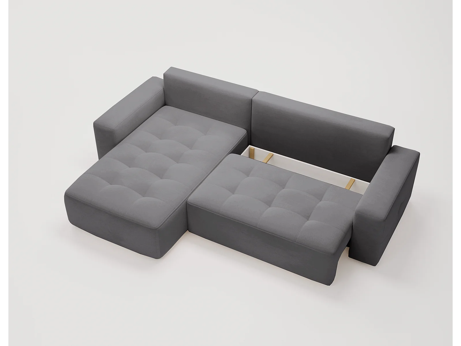 Emporius Nevada Hoekbank 250 cm met slaapfunctie et bedlade, links, fluweel grijs (Trinity 15)