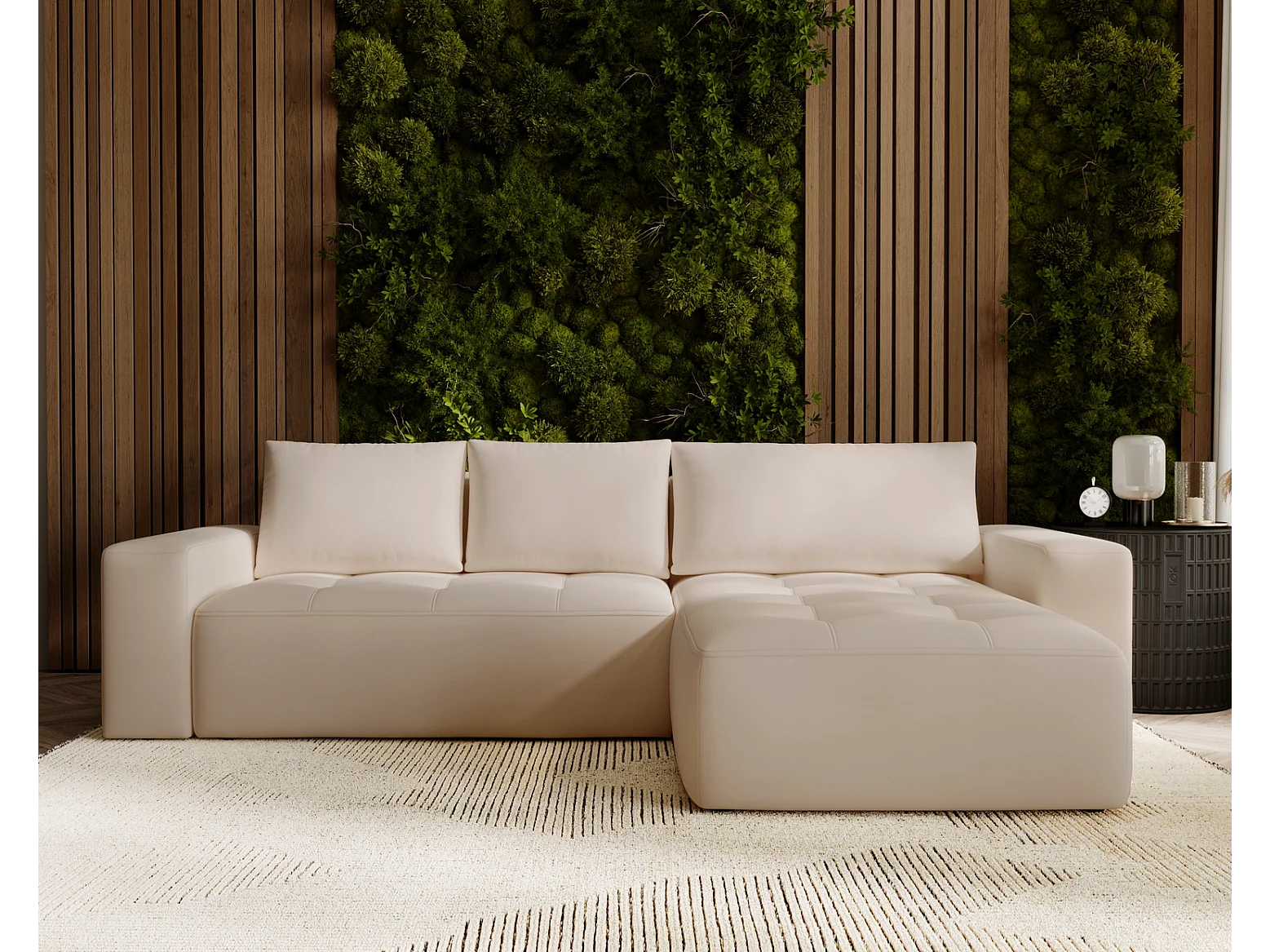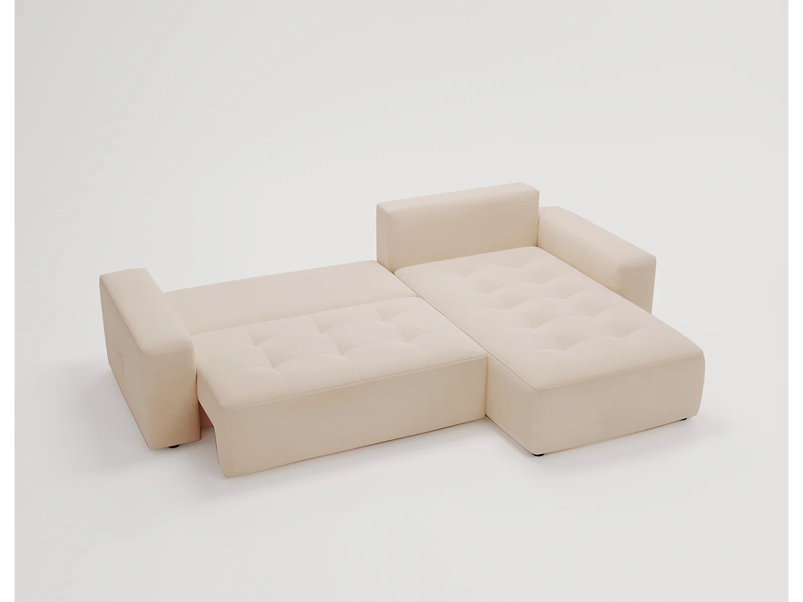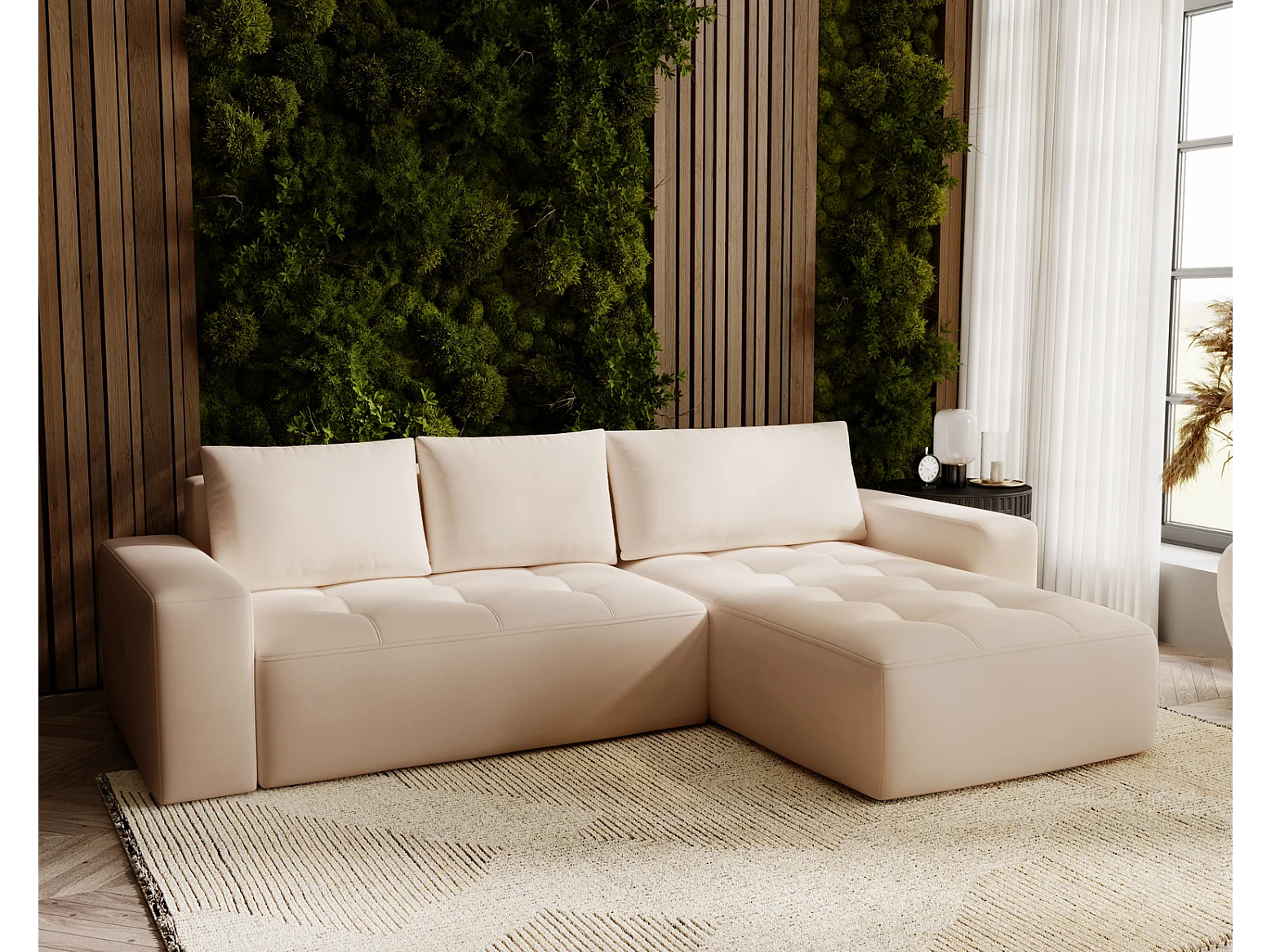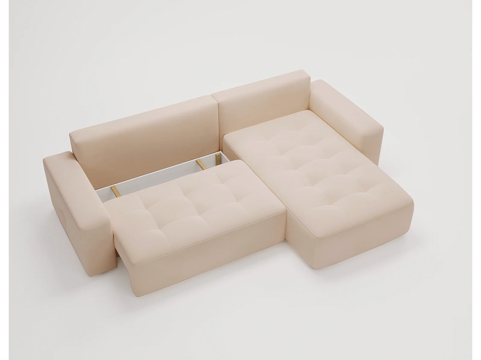 Emporius Nevada Hoekbank 250 cm met slaapfunctie et bedlade, rechts, fluweel beige (Trinity 4)