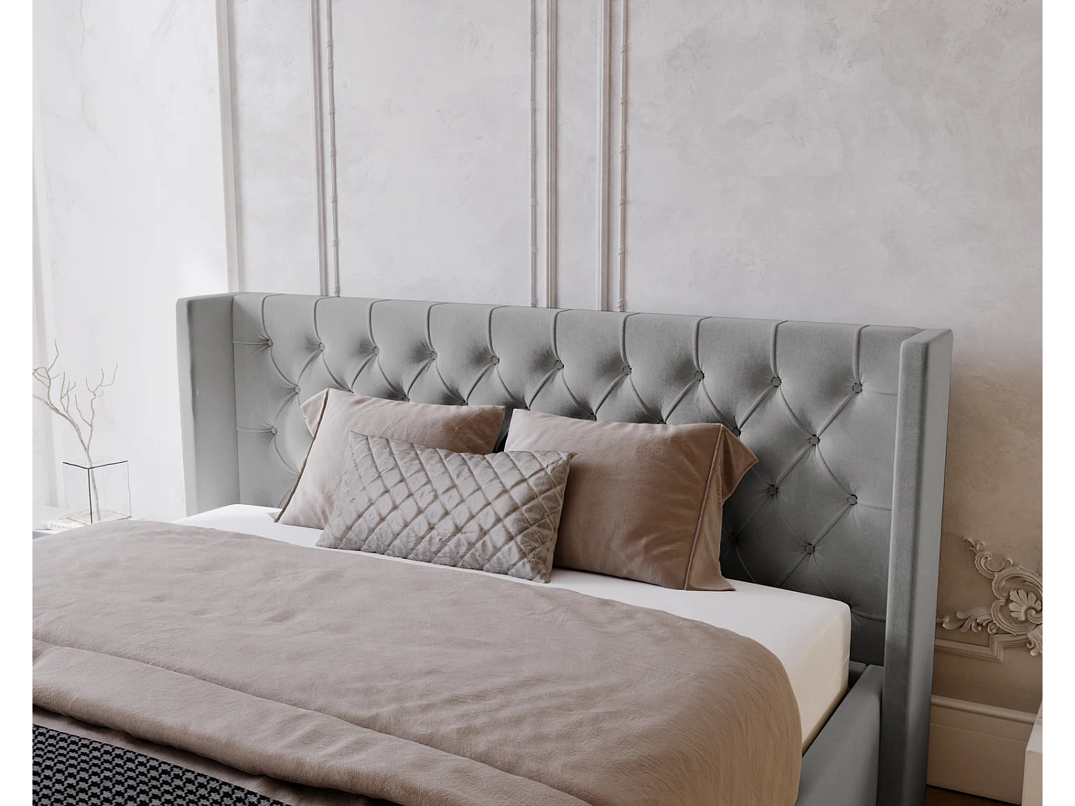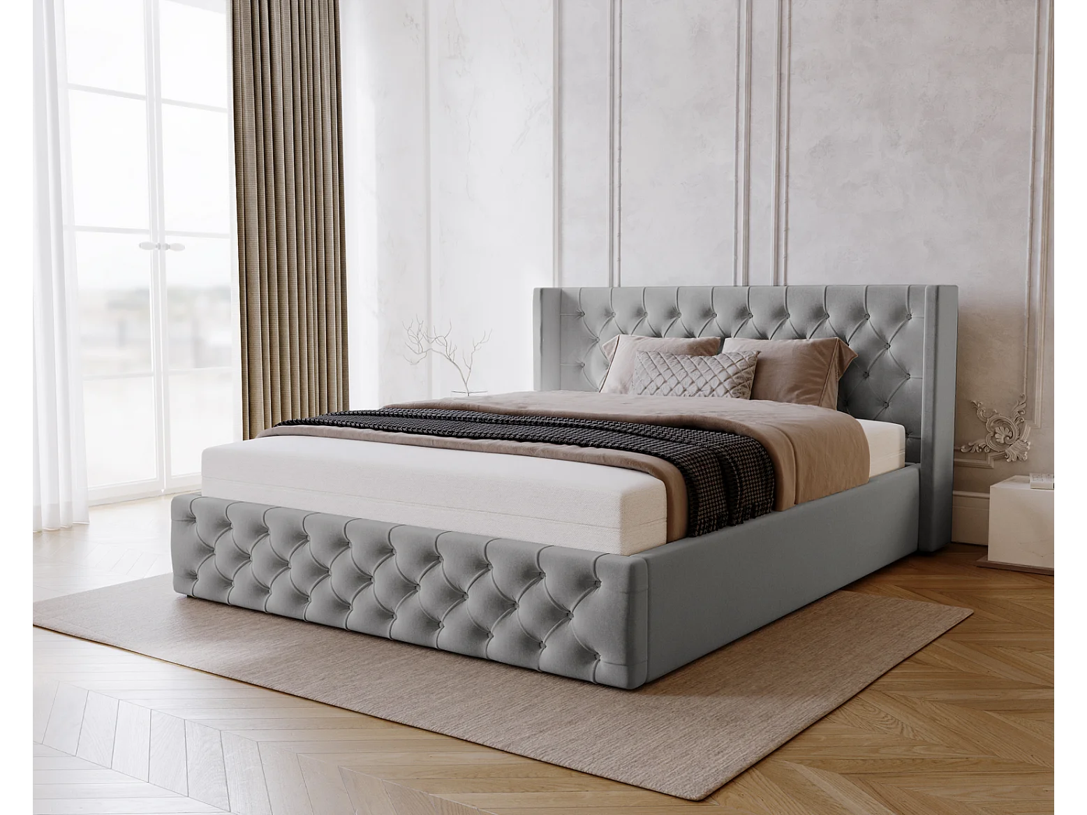 Emporius Rolia bed met opbergruimte 200x200 - tweepersoonsbed 200x200 gestoffeerd bed fluwelen Lichtgrijs (Magic Velvet 2218)