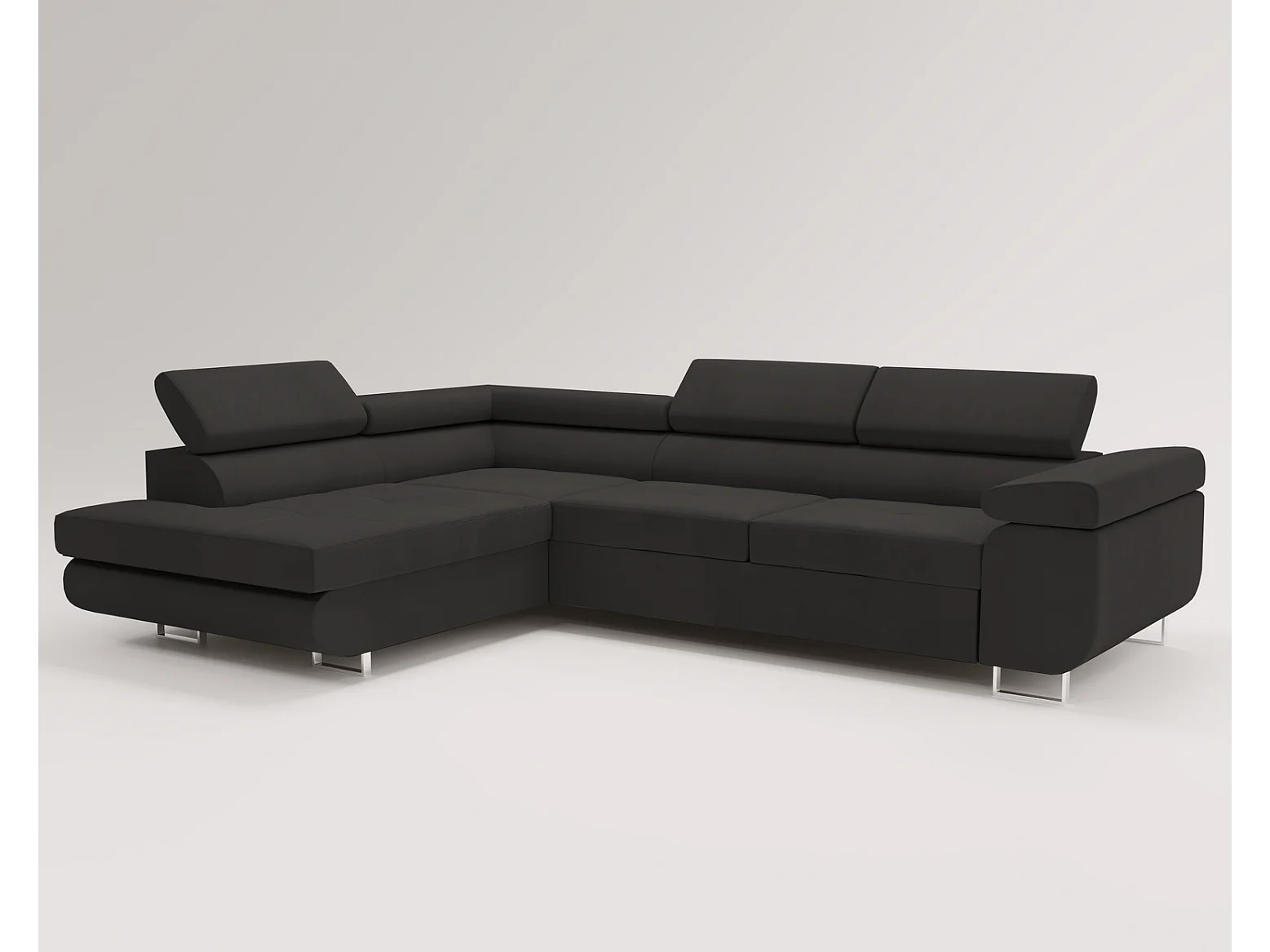 Emporius Sorlo links Hoekbank met slaapfunctie, sofa met bedlade - gestoffeerde bank zwart (Amor Velvet 4322)