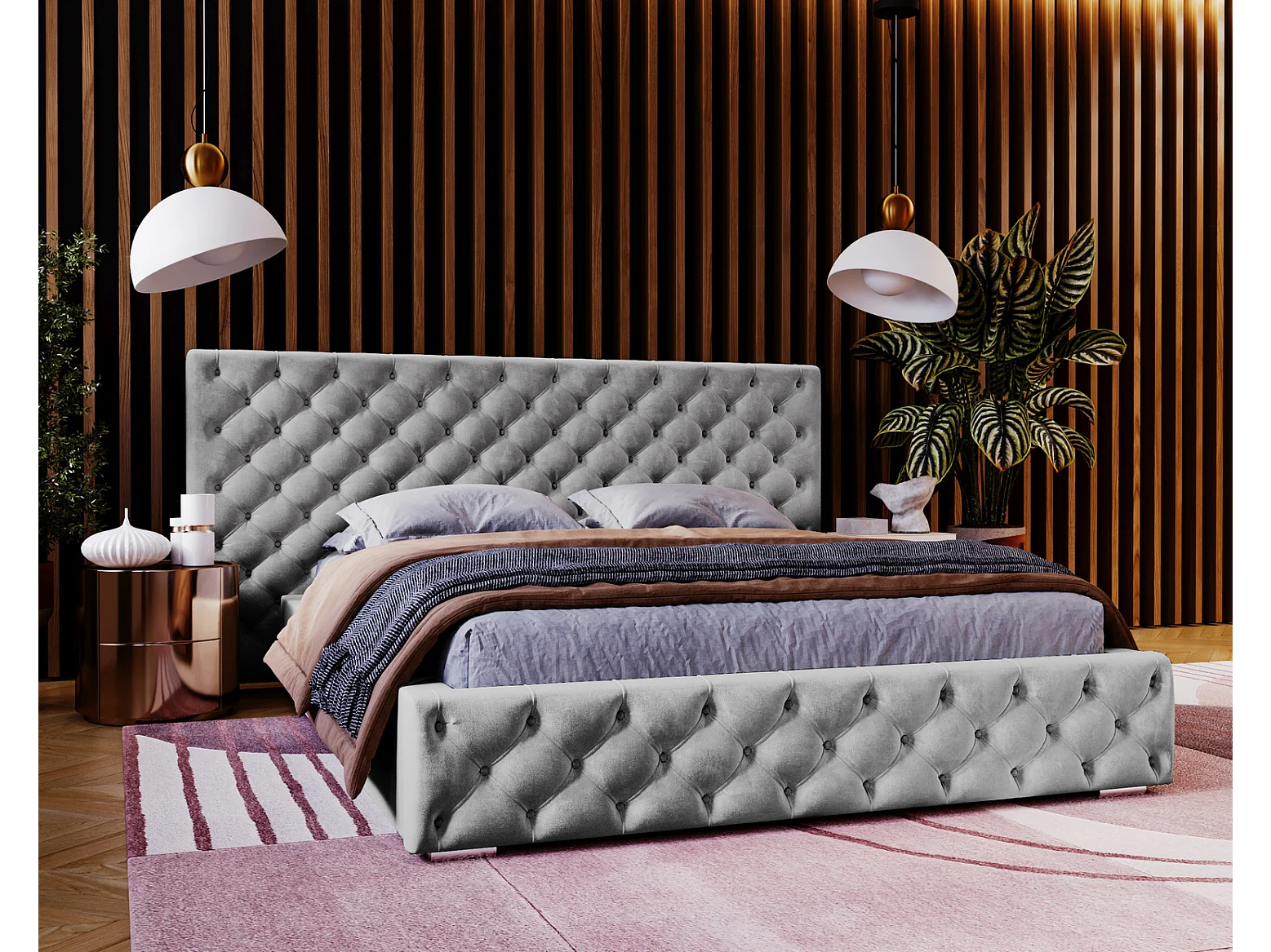 Emporius tweepersoonsbed 160x200 Bella, glamourstijl - gestoffeerd bed, chesterfield, opbergruimte - fluweel Grijs (Magic Velvet 2217)