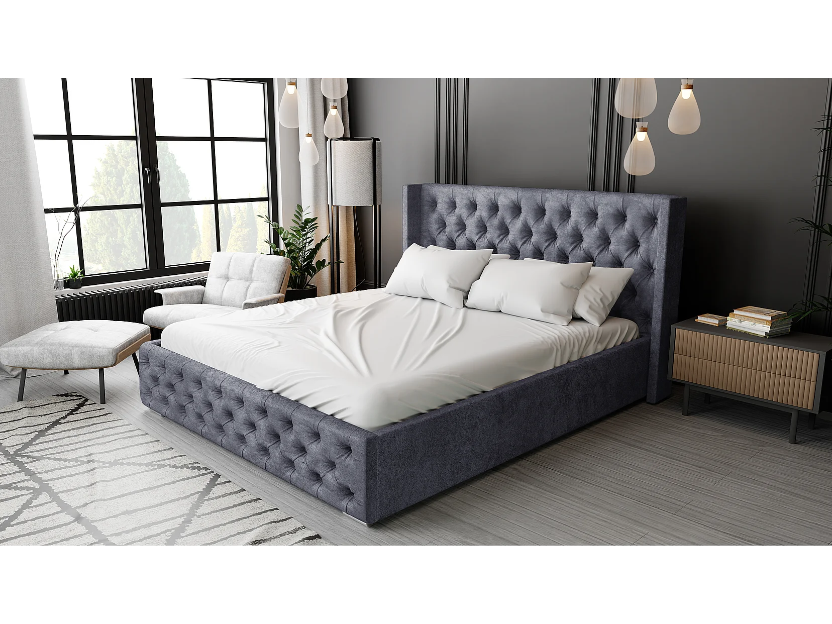 Emporius Tweepersoonsbed 180x200 Rolia - gestoffeerd bed met opbergruimte, Slaapkamer, Tienerkamer - Fluweel Donkergrijs (Paros 06)