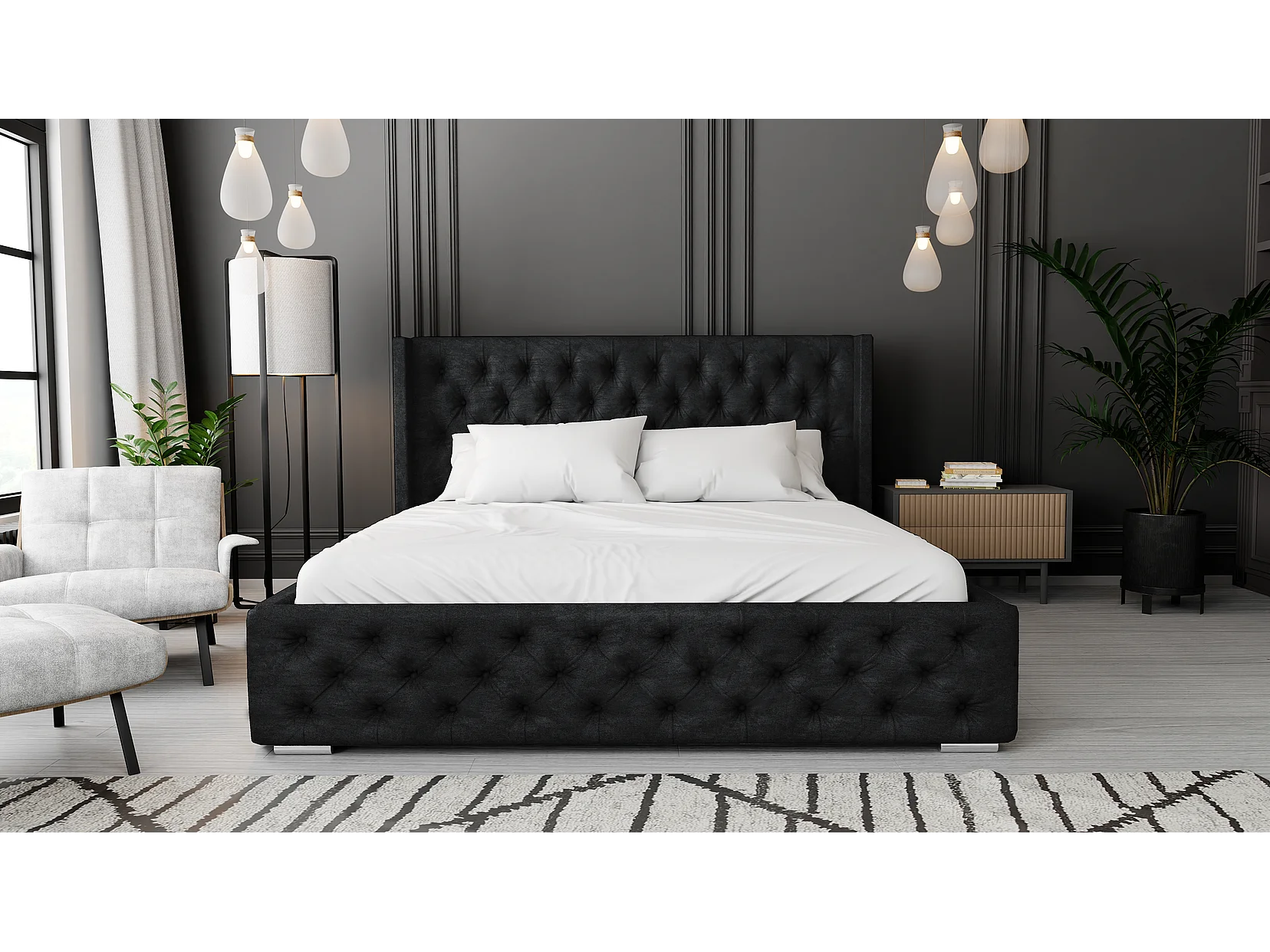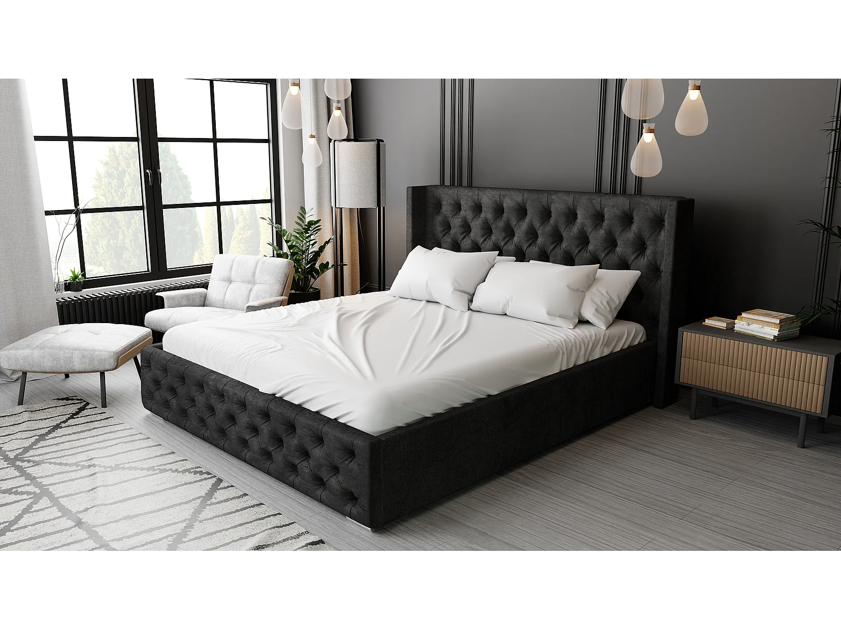 Emporius Tweepersoonsbed 180x200 Rolia - gestoffeerd bed met opbergruimte, Slaapkamer, Tienerkamer - Fluweel Zwart (Kronos 07)