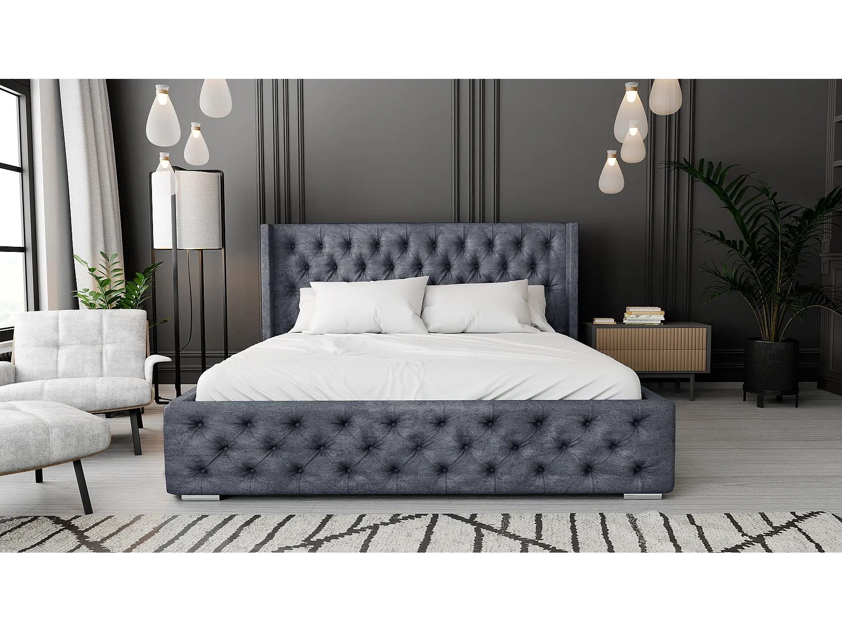 Emporius Tweepersoonsbed 200x200 Rolia - gestoffeerd bed met opbergruimte, Slaapkamer, Tienerkamer - Fluweel Donkergrijs (Paros 06)