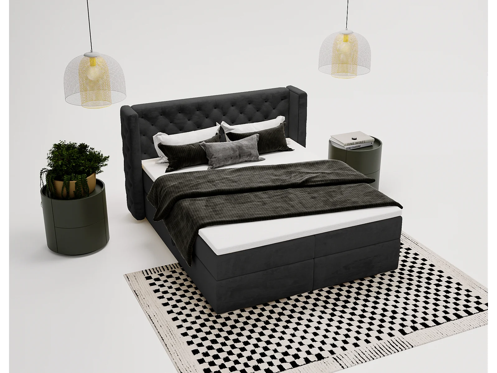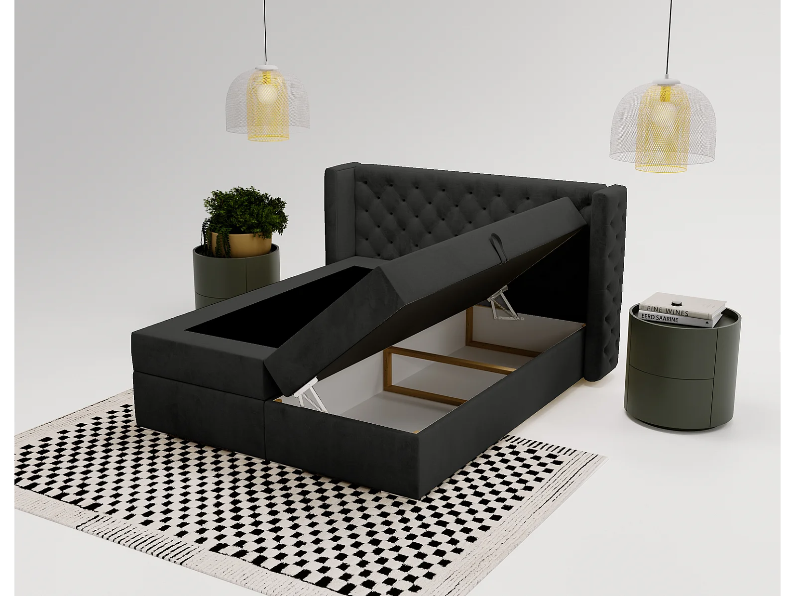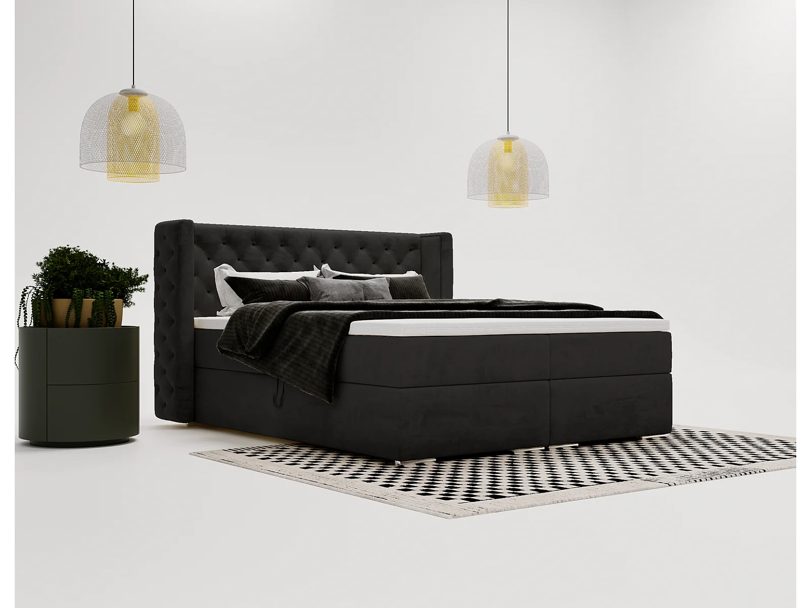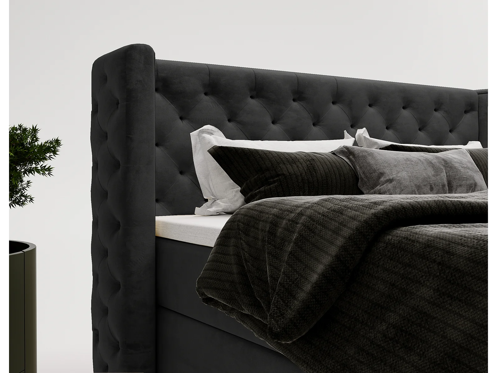 Emporius Valencia Box tweepersoonsbed bed 140x200, bed met opbergruimte - matras en topper - boxspring bed fluweel zwart (Magic Velvet 2219)