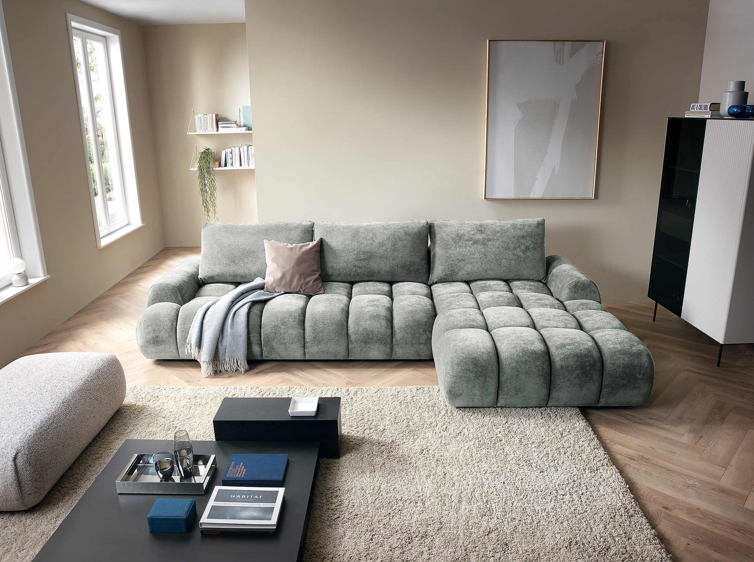 Emporius Valerio Hoekbank met bedlade - Slaapbank 340 cm , rechts - lichtgrijs (Ditra New 16)