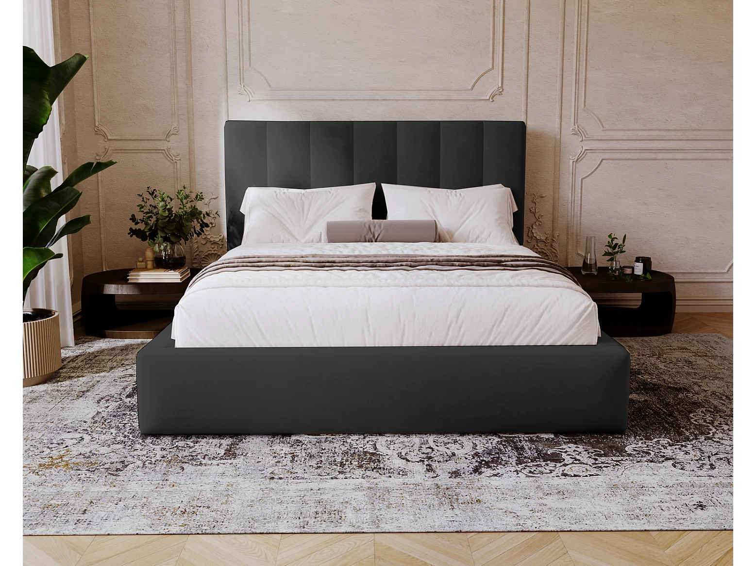 Emporius Velor gestoffeerd bed 140x200 - bed met opbergruimte en bedlade, tweepersoonsbed 140x200 fluwelen Zwart (Magic Velvet 2219)