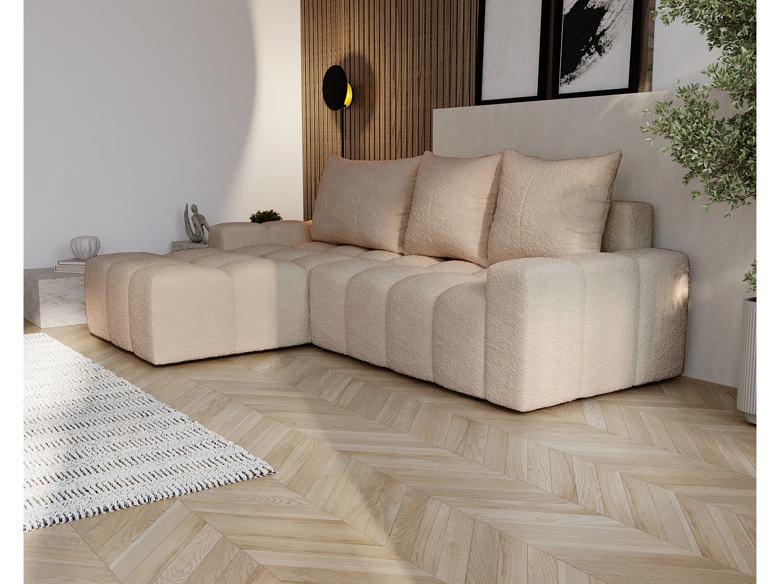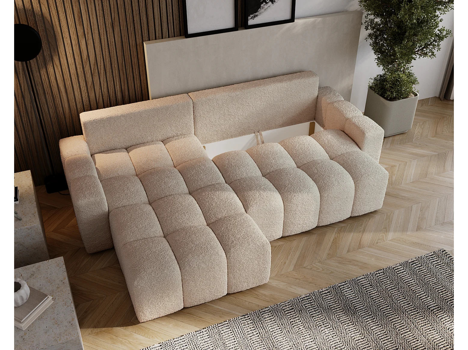 Emporius Wilson Hoekbank met slaapfunctie - slaapbank met bedlade, links, bouclé beige (Anthology 3)
