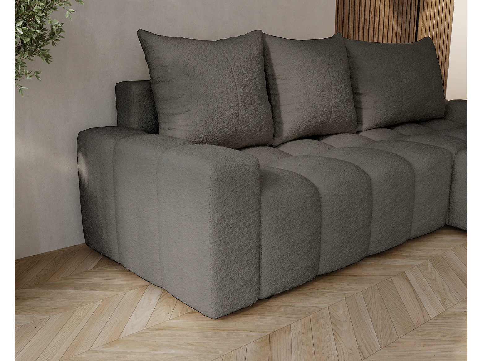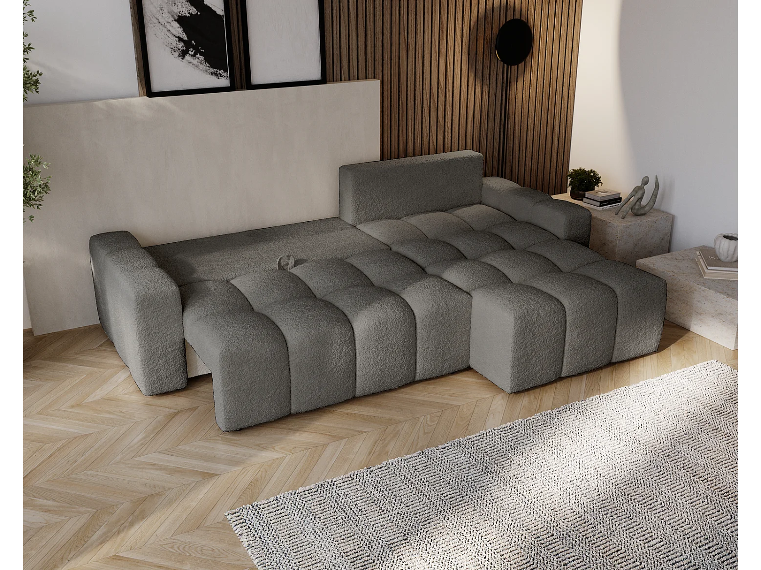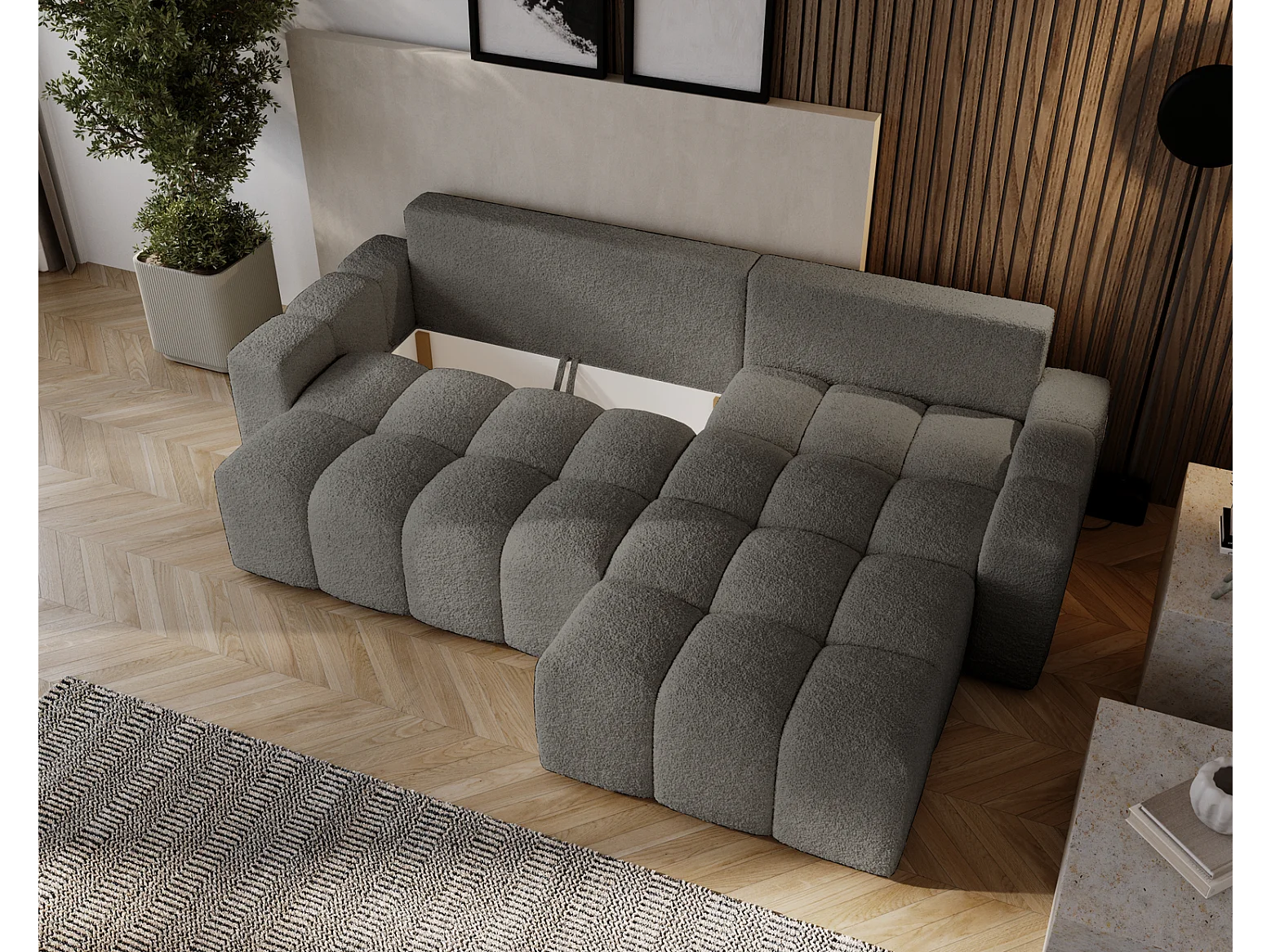 Emporius Wilson Hoekbank met slaapfunctie - slaapbank met bedlade, rechts, bouclé donkergrijs (Anthology 18)